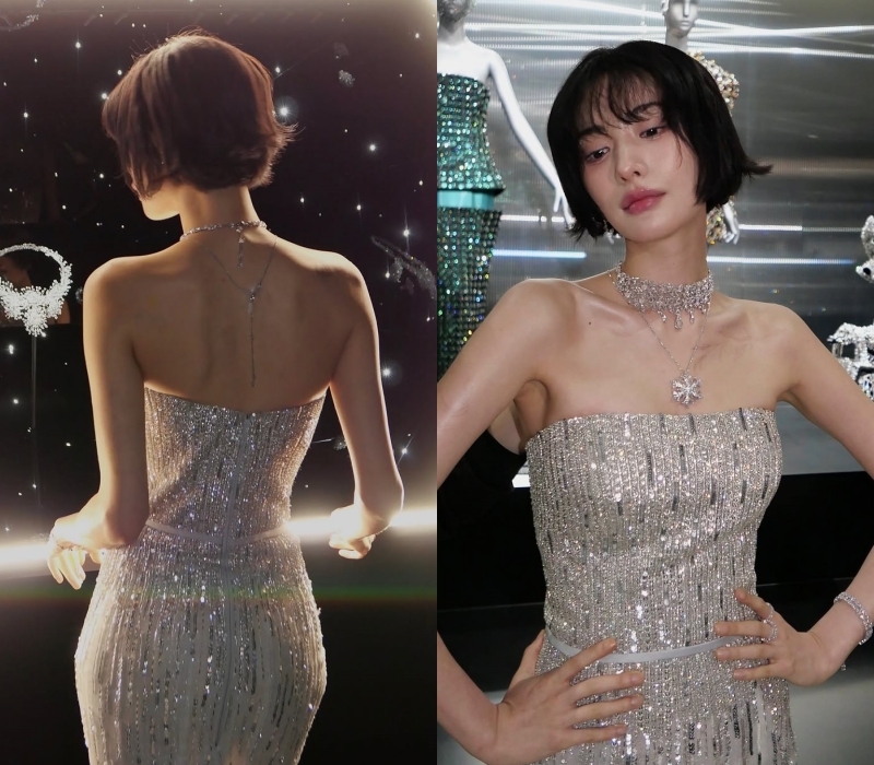 一方、ナナは2024年にソウル市城東区聖水洞で開催された「Swarovski」の展示会で同じドレスを着用し、視線を集めた。首筋から肩のラインを大胆に見せたショートヘアに華やかなジュエリーを合わせたナナは、堂々とした態度でクールかつアーティスティックな雰囲気を完成させた。