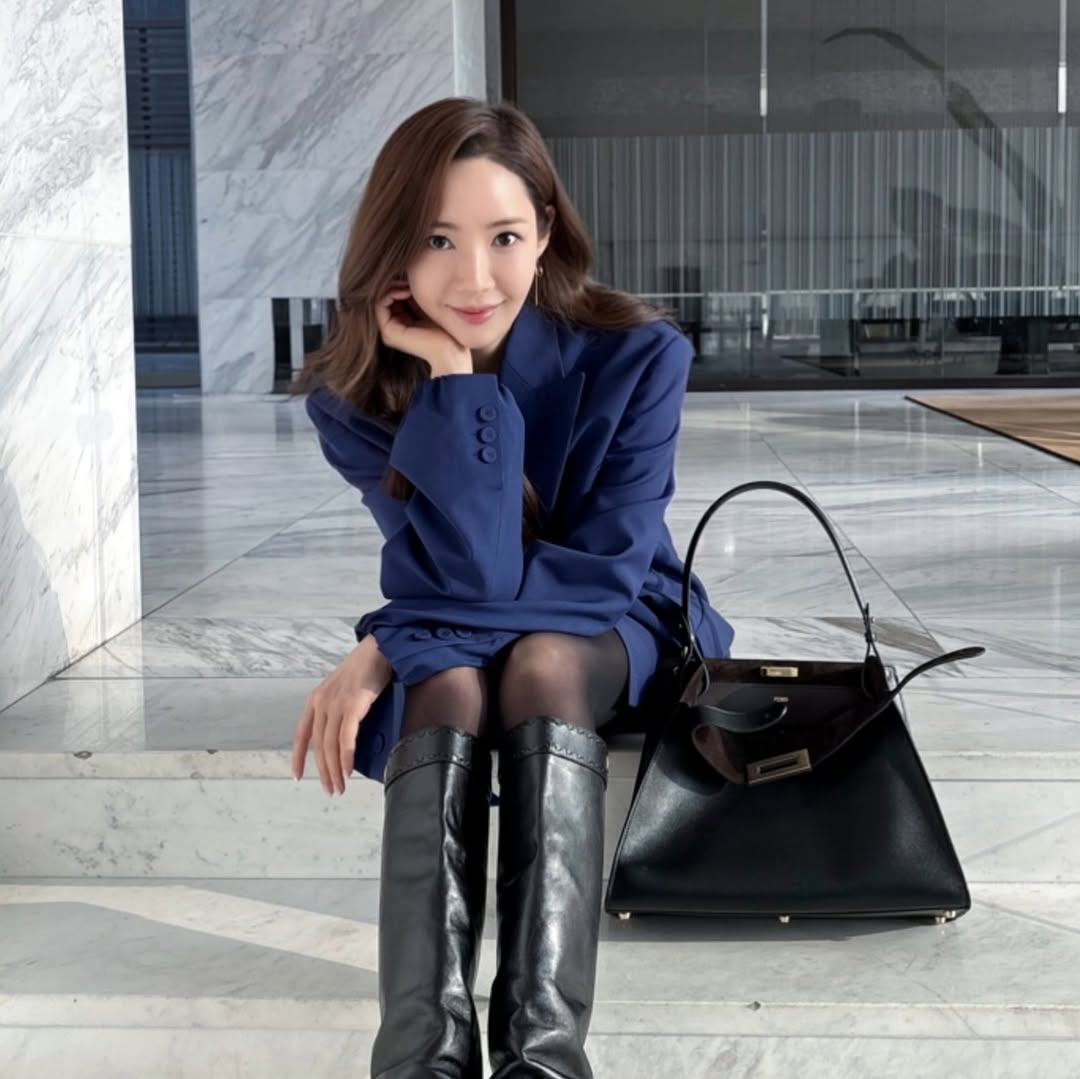 写真でパク・ミニョンは青いジャケットと黒いロングブーツを身にまとい、美しさを振りまいた。そのほかにも階段に座ってほおづえをつき、ほほ笑みを浮..