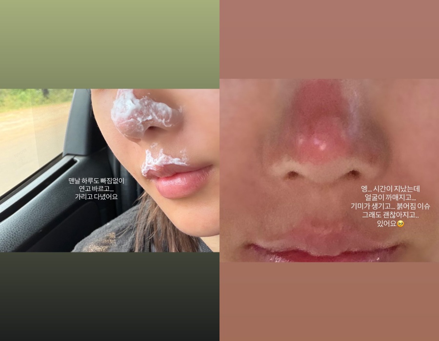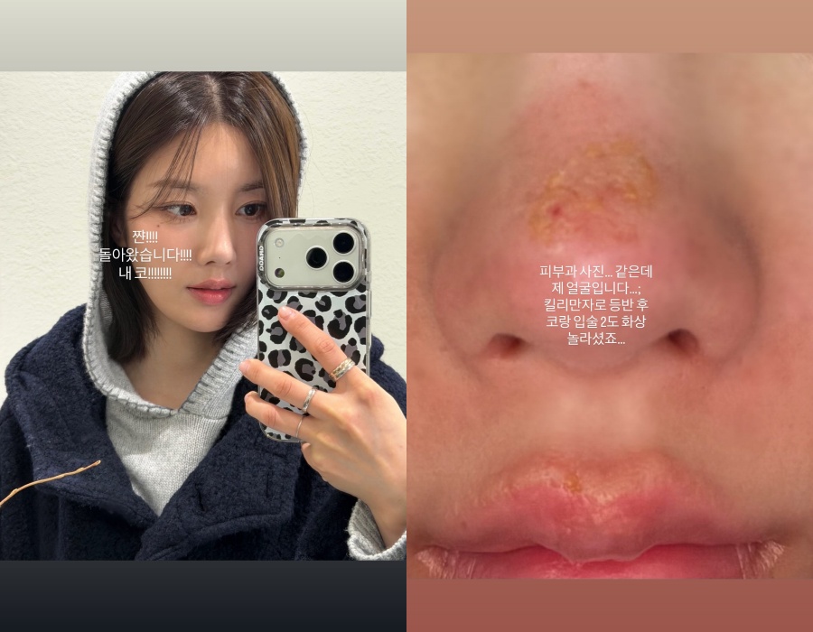 クォン・ウンビは3日、ソーシャルメディアに「皮膚科の写真…みたいだけど、わたしの顔です。キリマンジャロに登った後、鼻と唇に2度のやけど。驚きましたよね」という書き込みと共に写真を載せた。