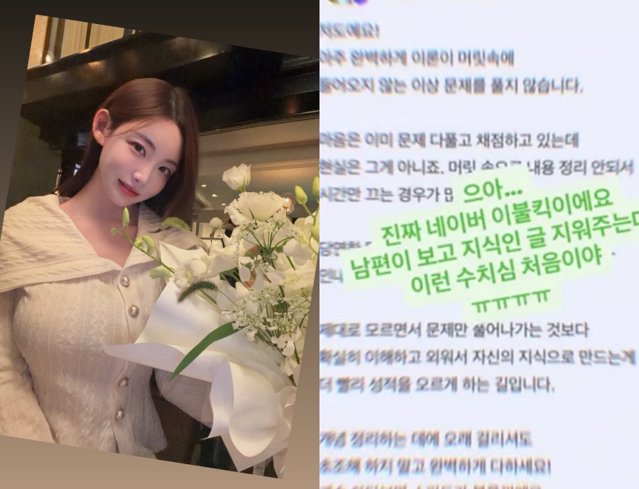 クァク・ミンソンは交流サイト(SNS)「インスタグラム」の「ストーリーズ」で、「うわ…本当にネイバー…思い出しても恥ずかしい。夫が気づいて、知識iNの投稿を削除してくれたけど、こんなに恥ずかしいのは初めて」と書き込み、写真も一緒に掲載した。