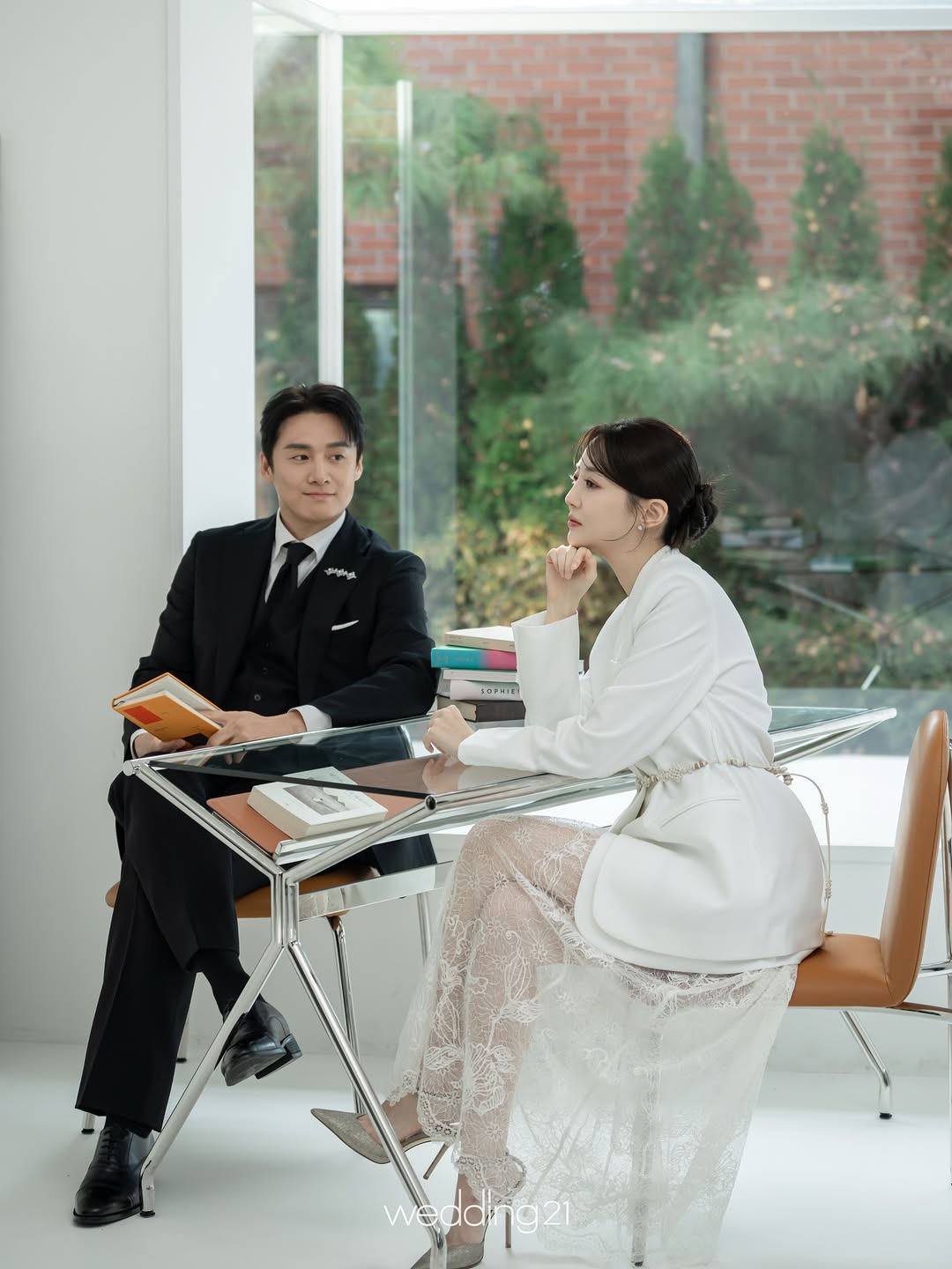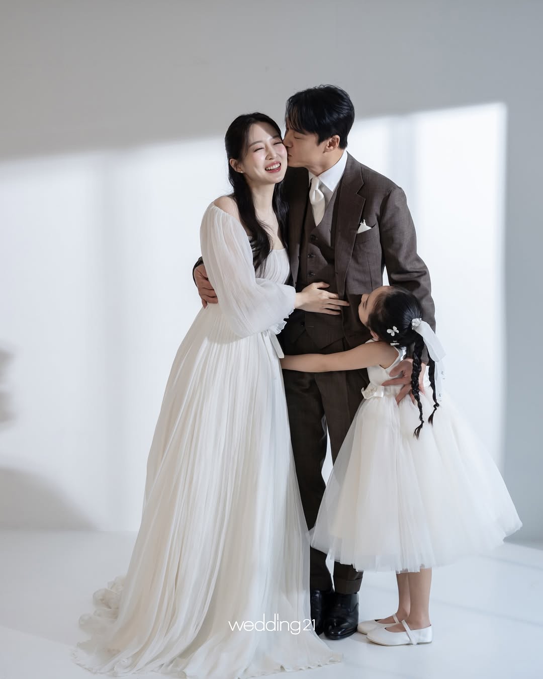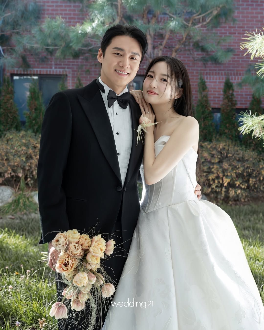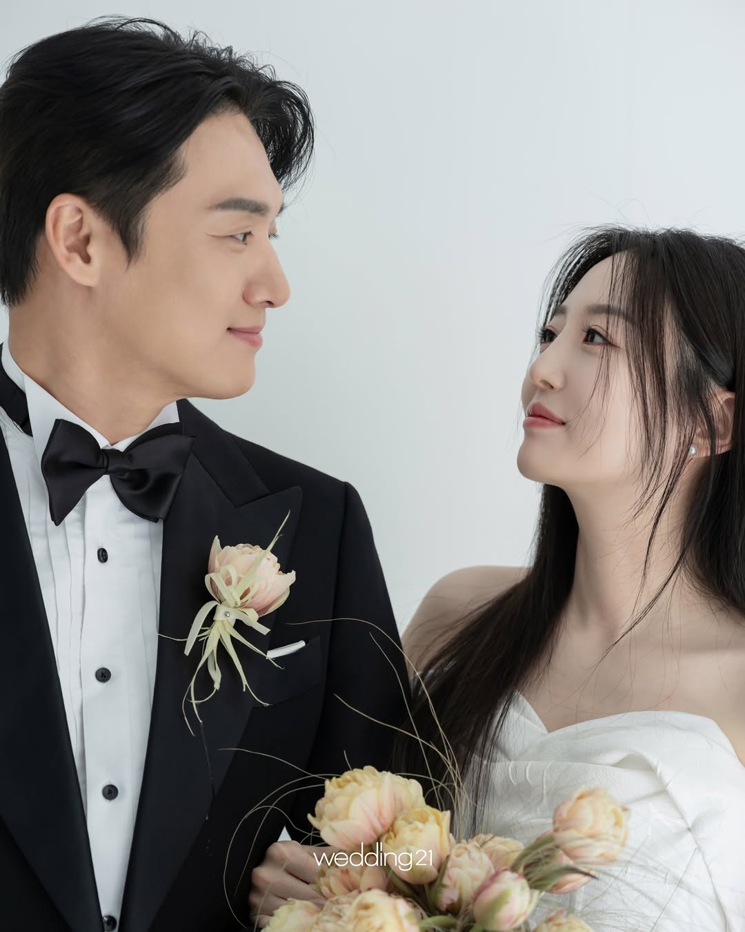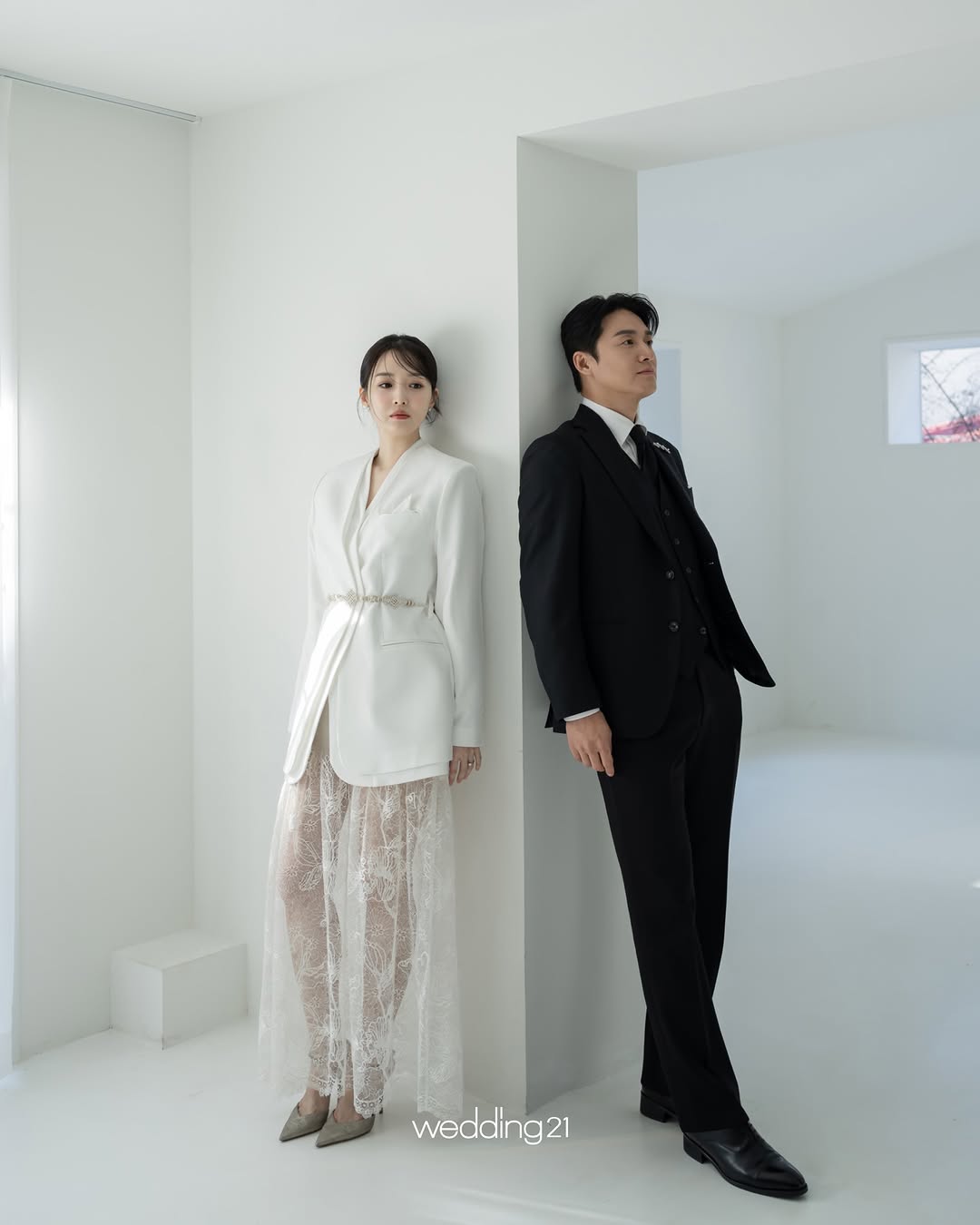 公開された写真には、ウエディング・ドレスを着たキム・ソヨンとタキシード姿のオ・サンジンが写っている。結婚10年目の夫婦らしい安定感とゆとりのある雰囲気がにじみ出ている。