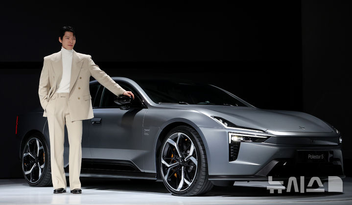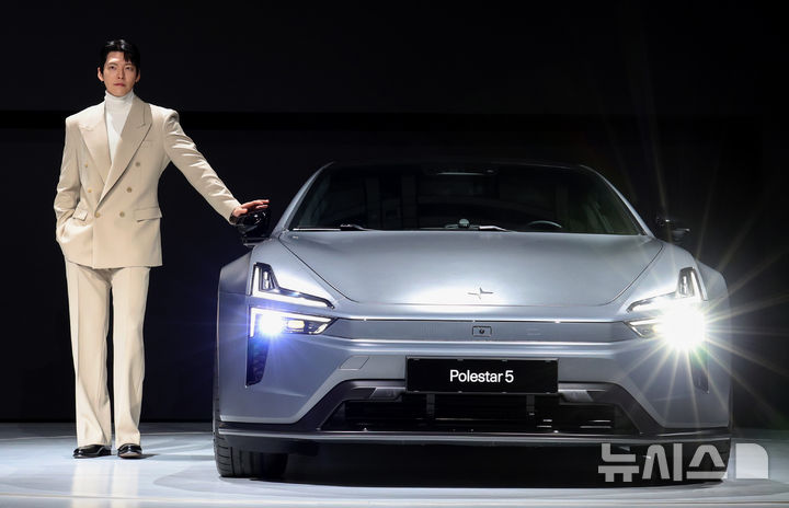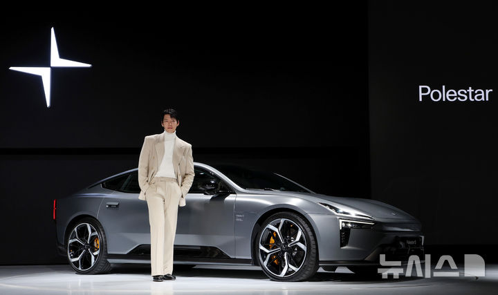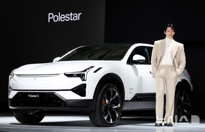 【NEWSIS】スウェーデンのプレミアム電気自動車ブランド「Polestar」のアンバサダーを務める俳優キム・ウビンが11日、ソウル市竜山区のグランド・ハイアット・ソウルで開かれた「2026 Polestar メディアデー」イベントで、「Polestar 3」と共にポーズを取っている様子。