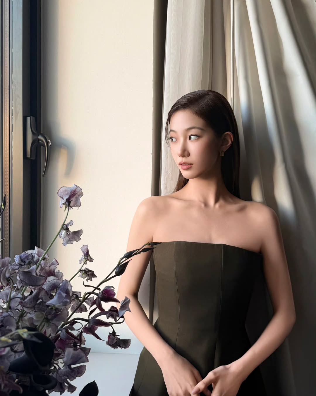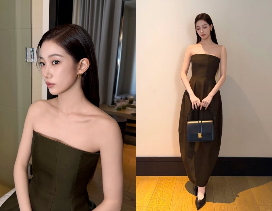 公開された写真を見ると、カズハはすっきりしたロングヘアでシンプルなデザインのベアトップドレスを着ており、上品な魅力が感じられる。特に、カズハは直角の肩のラインやきゃしゃなボディラインをあらわにし、「バレエの女神」らしい姿を見せつけ、感嘆の声が上がっている。