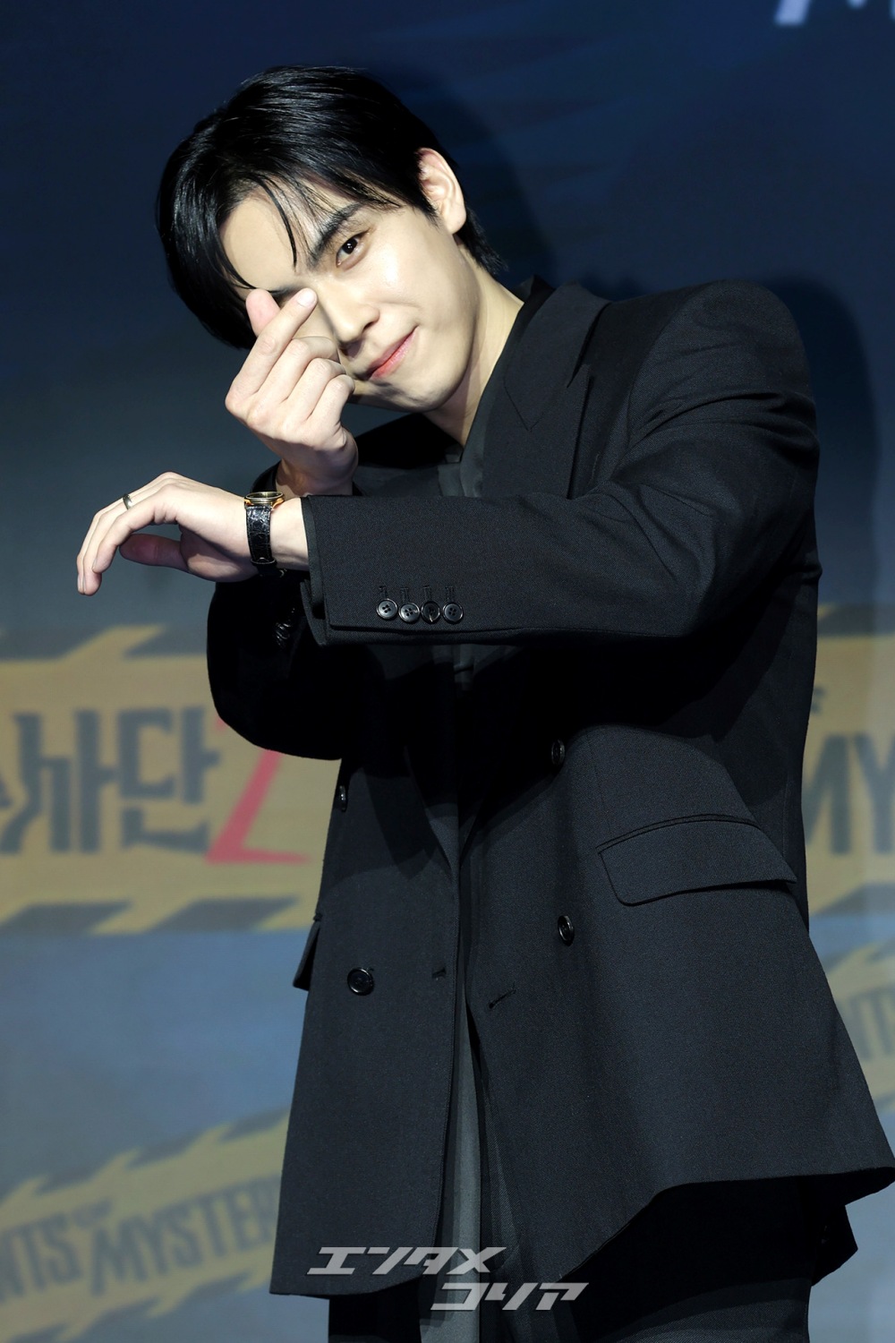 イ・ヨンジン(写真左から)、ジョン・パク、ヘリ、キム・ソグ・プロデューサー、チョン・ジョンヨン・プロデューサー、イ・ウォンギ・プロデューサー、Gabee、aespaのカリナ、キム・ドフンが19日、ソウル市麻浦区のホテル・ナル・ソウルMギャラリーで行われたNetflixのリアリティ番組『エージェント・オブ・ミステリー』シーズン2の制作発表会に出席した。