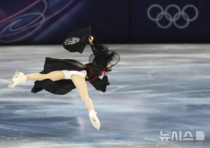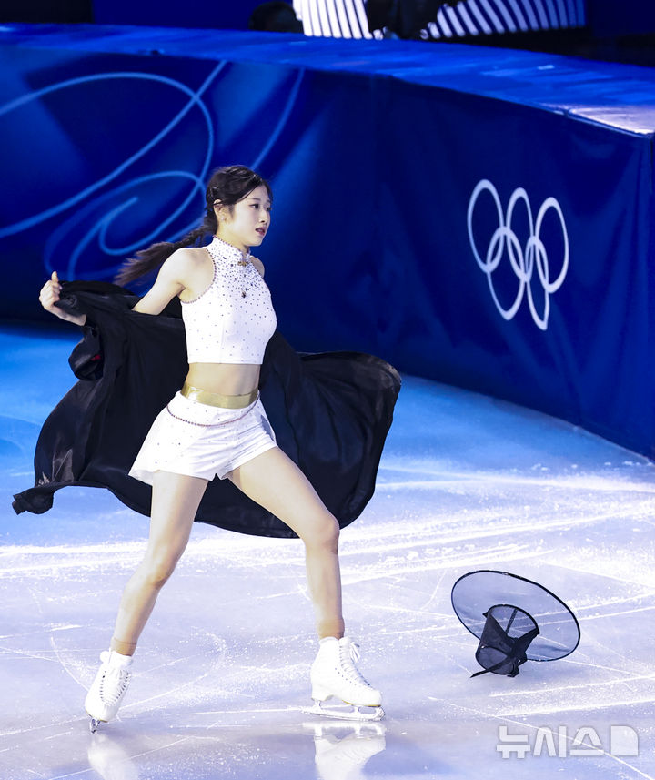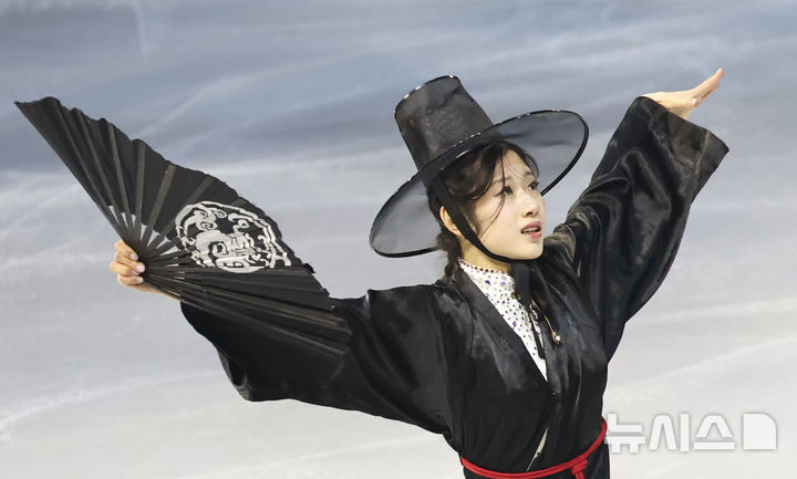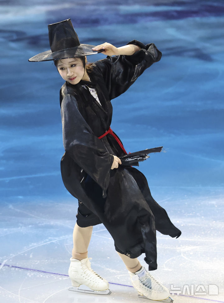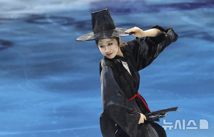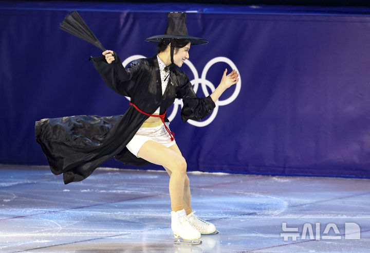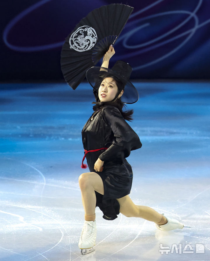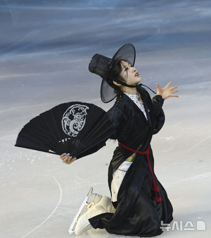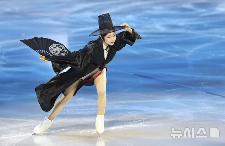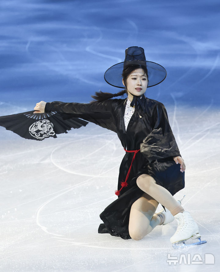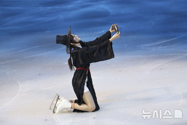 【NEWSIS】21日(現地時間)、イタリアのミラノ・アイススケートアリーナで、2026年ミラノ・コルティナ冬季五輪フィギュアスケートのエキシビションが行われた。写真はNETFLIXアニメ『KPOPガールズ! デーモン・ハンターズ』のコンセプトを取り入れたSaja Boys(サジャ・ボーイズ)の衣装で演技を披露する女子シングル韓国代表の李海仁(イ・ヘイン)。