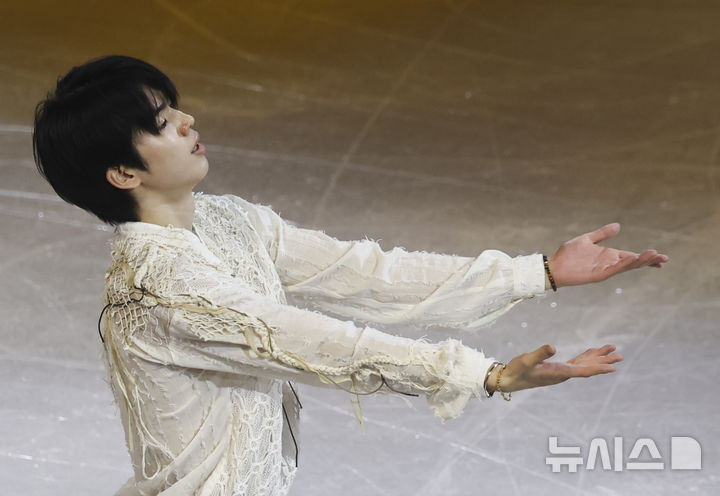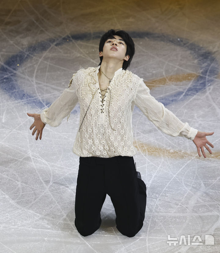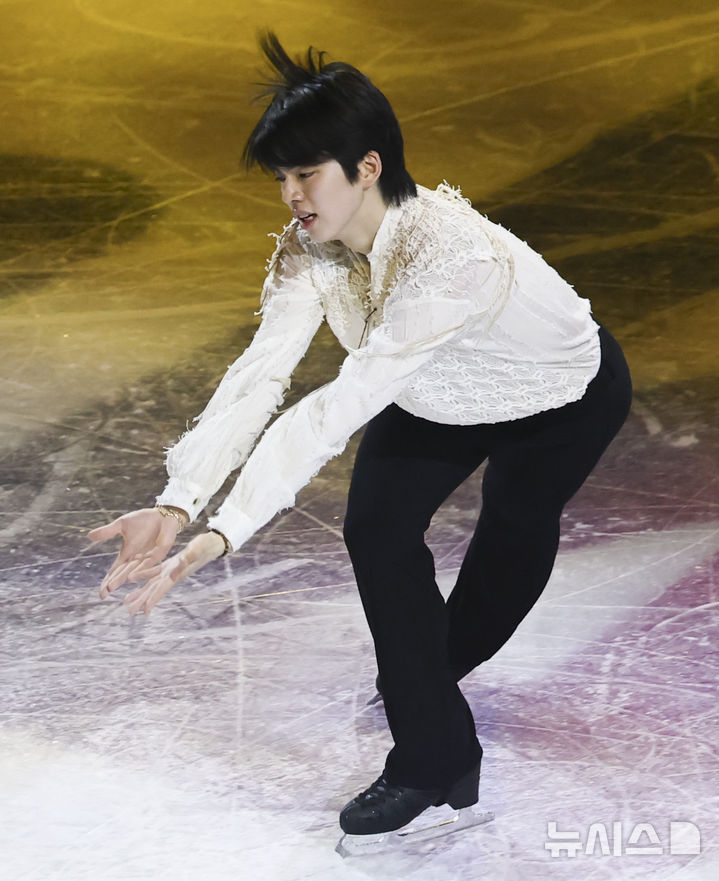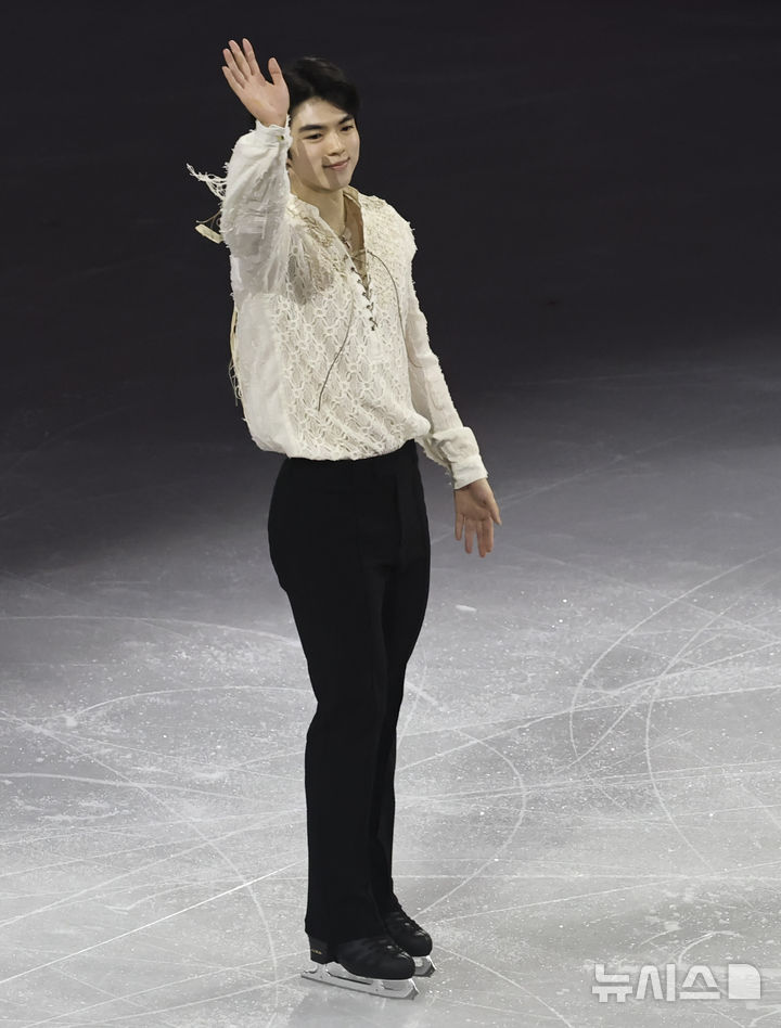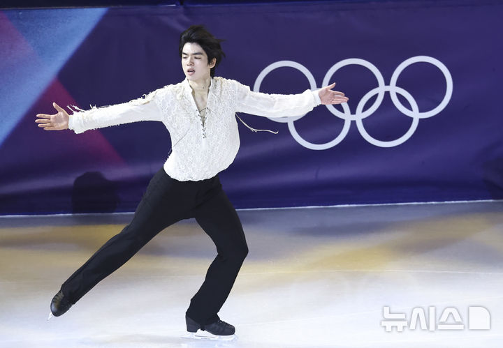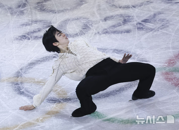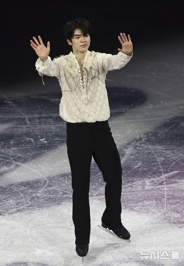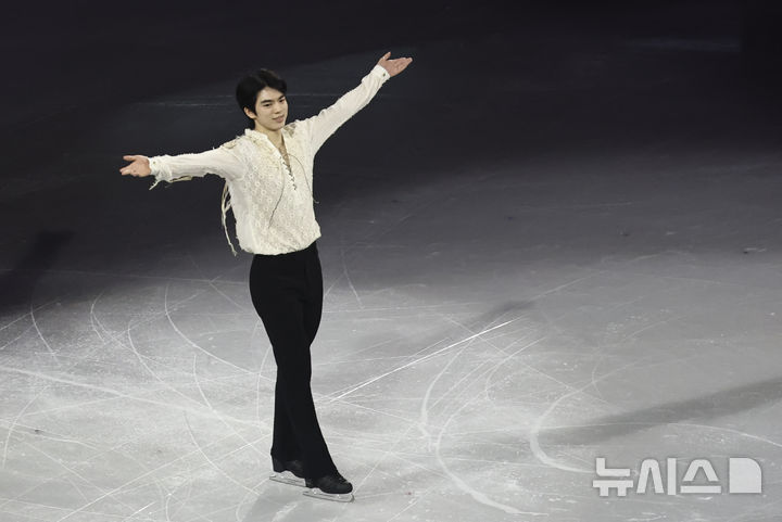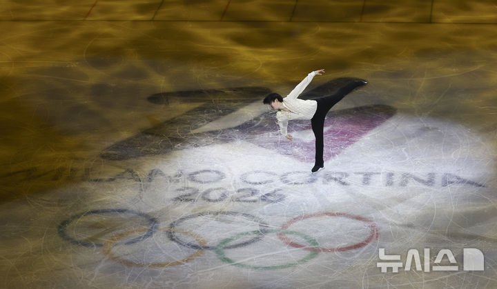 【NEWSIS】21日(現地時間)、イタリアのミラノ・アイススケートアリーナで、2026年ミラノ・コルティナ冬季五輪フィギュアスケートのエキシビションが行われた。写真は幻想的な演技を見せる車俊煥(チャ・ジュンファン)