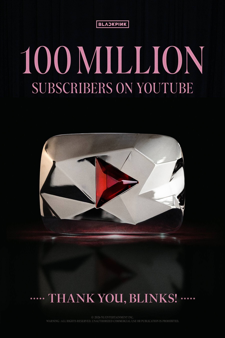 ジスは「BLACKPINKのユーチューブ・チャンネルが全世界の公式アーティスト・チャンネルとして初めてチャンネル登録者数1億人を達成しました。これを記念して、ユーチューブのレッド・ダイヤモンド・ボタンをいただきました」と語った。