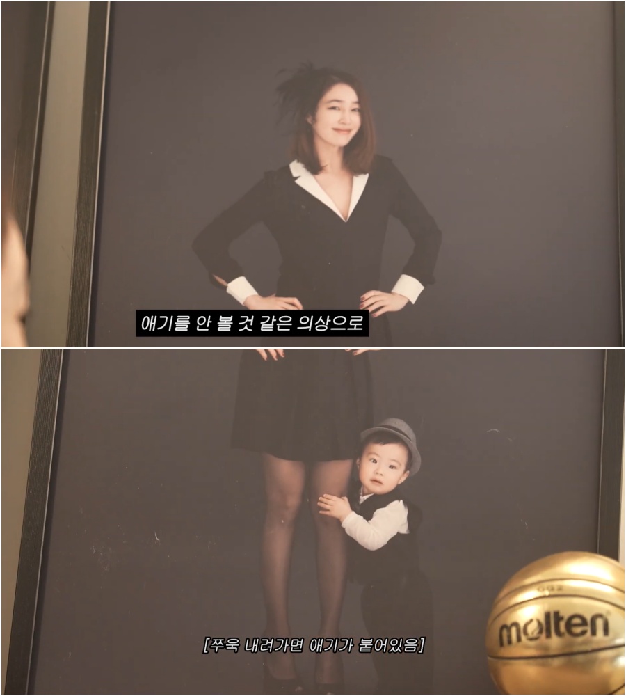 本棚をぎっしり埋め尽くした本を紹介し終えた後、イ・ミンジョンは本棚の上に掛けてある写真を紹介。父親イ・ビョンホンとジュヌ君、母親イ・ミンジョンとジュヌ君がそれぞれ一緒に撮った写真だ。