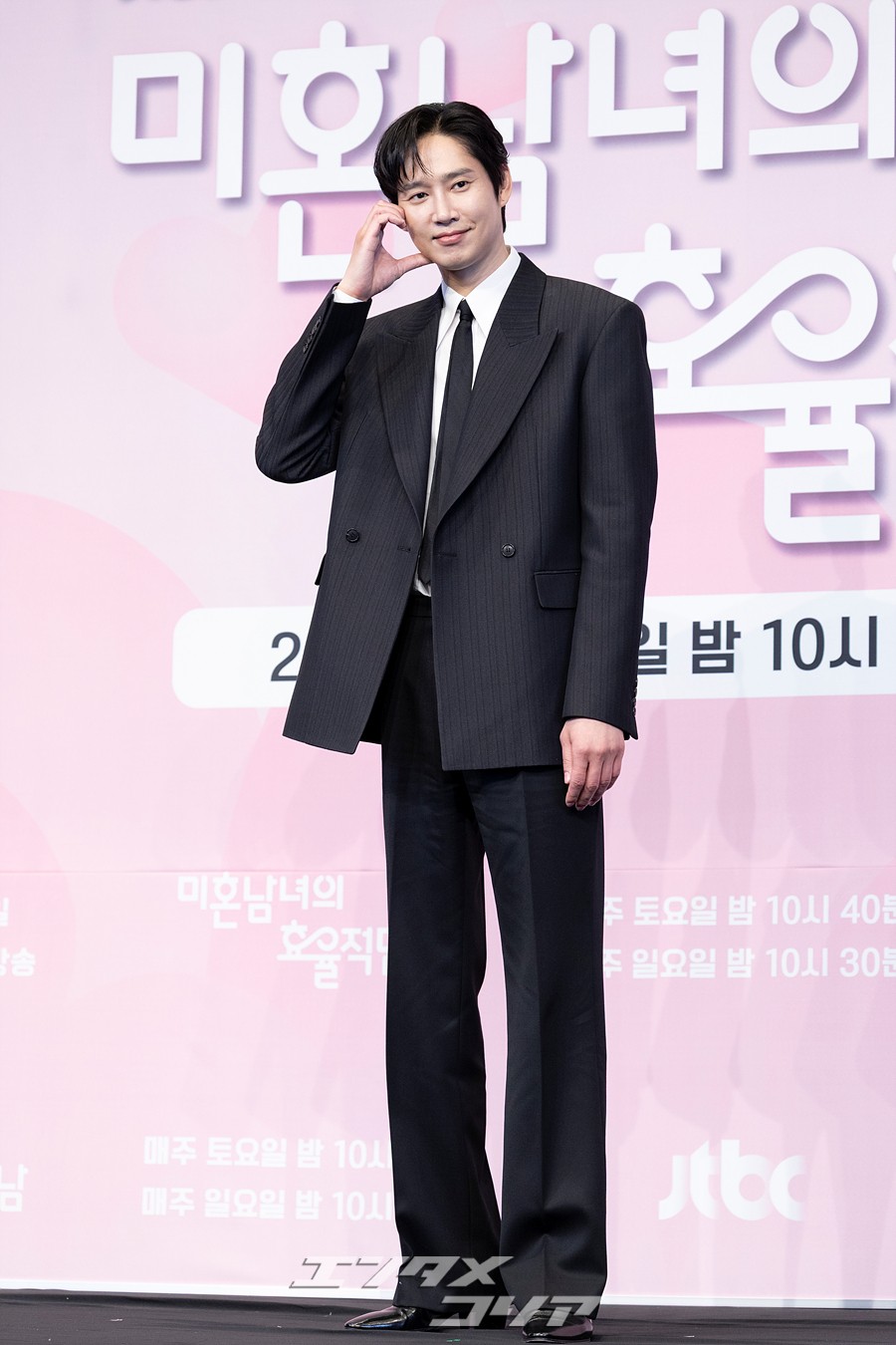 JTBCドラマ『未婚男女の効率的な出会い方』の制作発表会が26日午後、ソウル市九老区新道林洞のホテル「ザ・リンク・ソウル」で開かれ、キャストのハン・ジミン、パク・ソンフン、イ・ギテクとイ・ジェフン監督などが出席した。