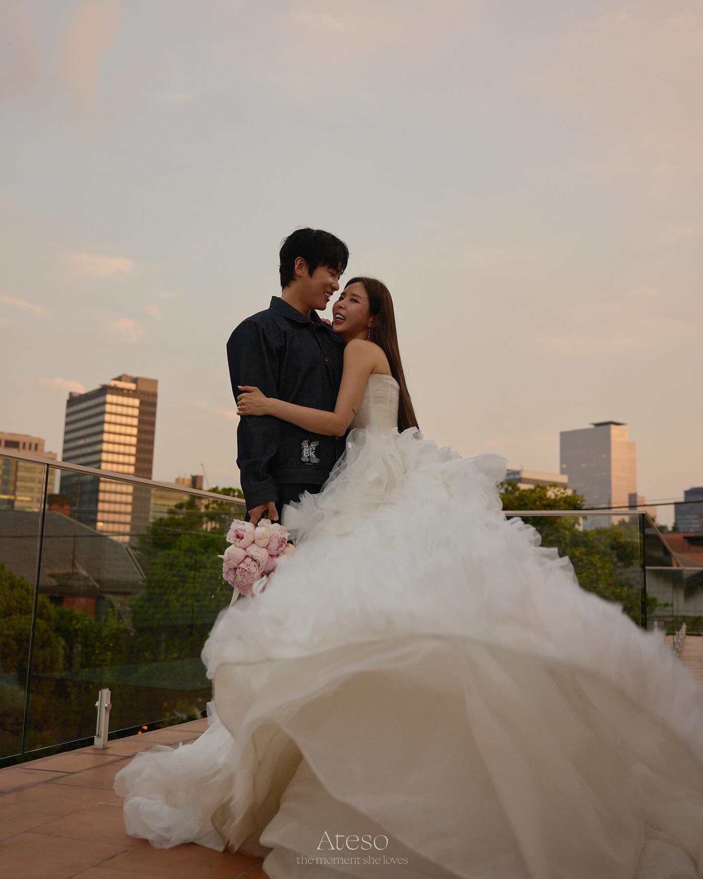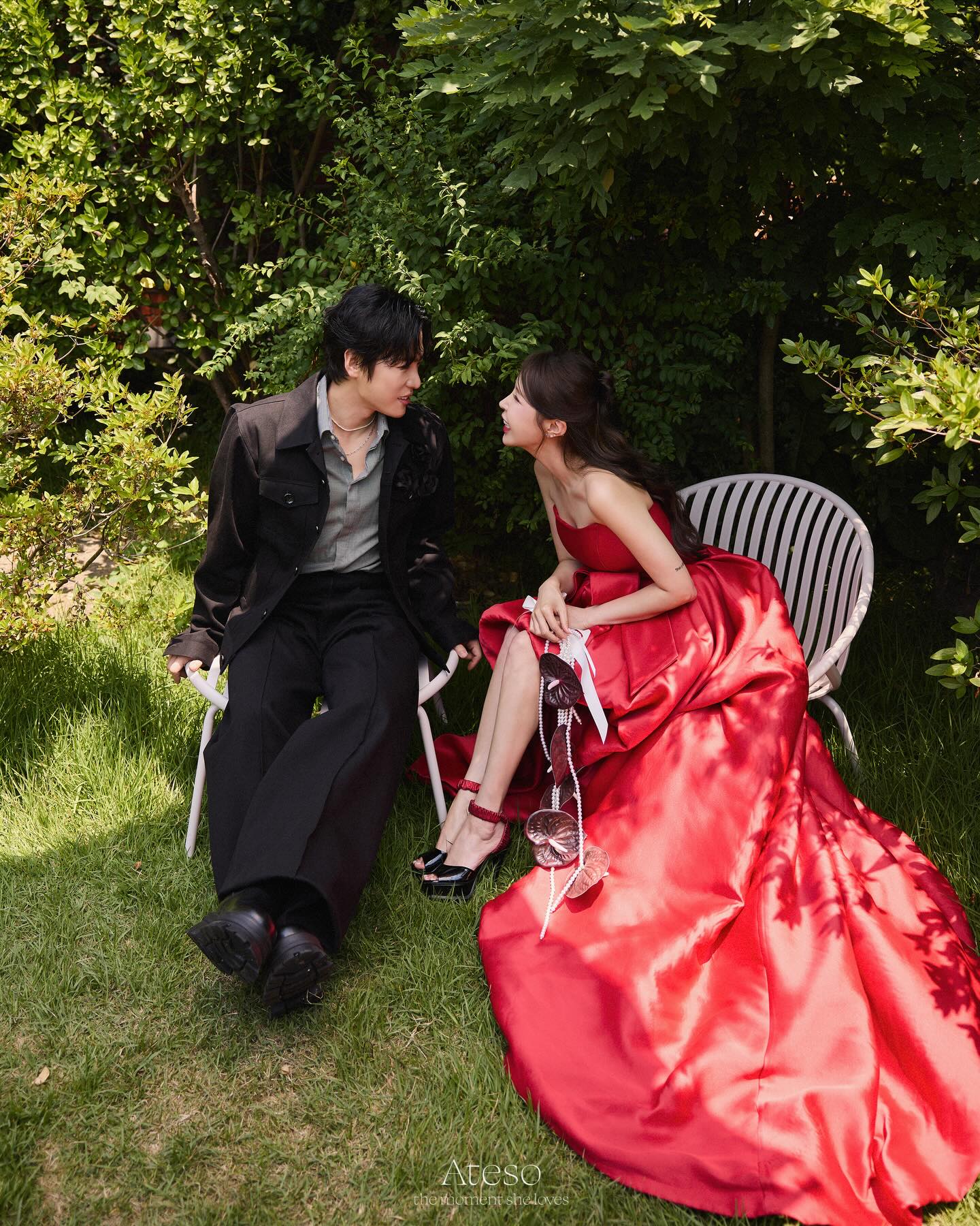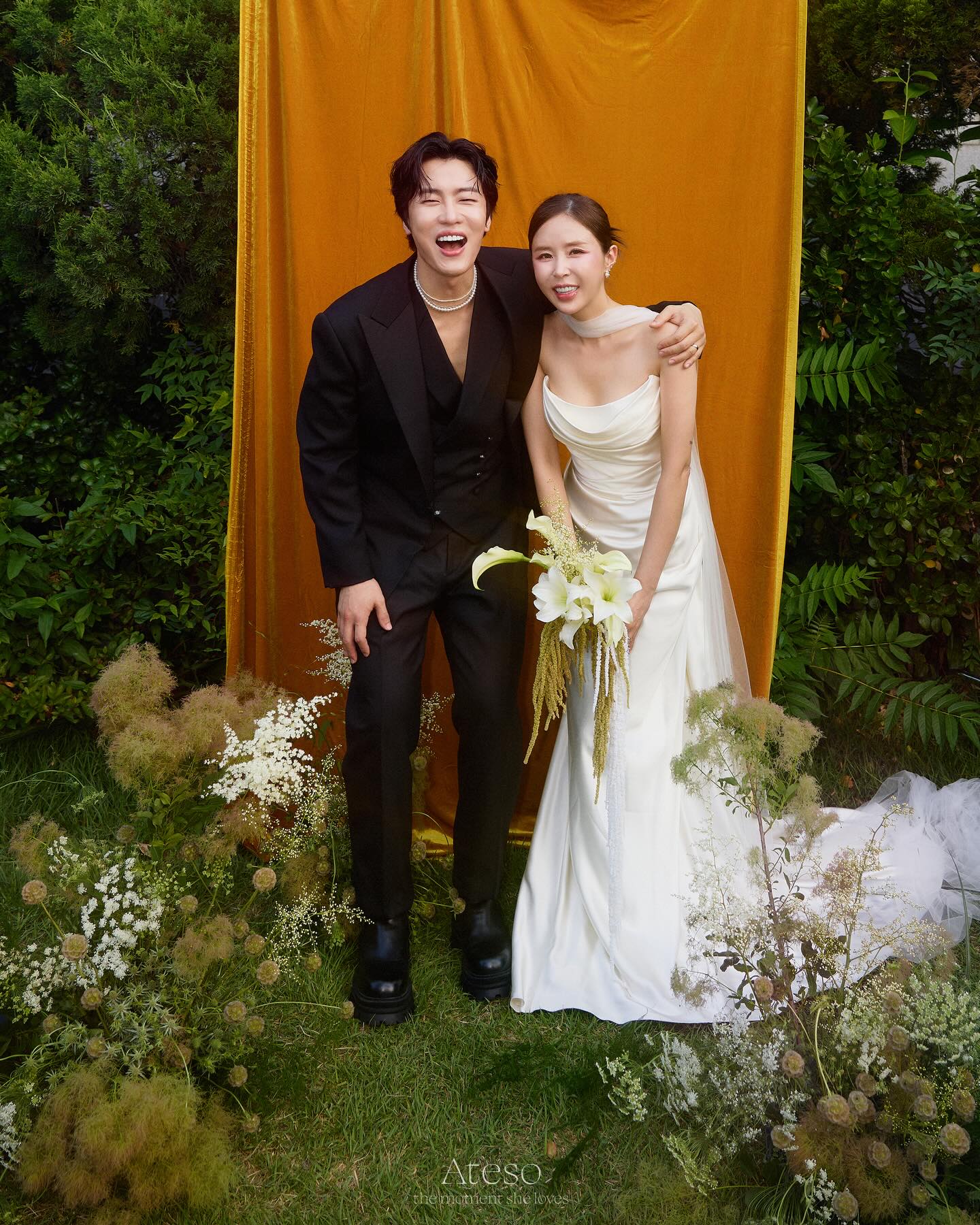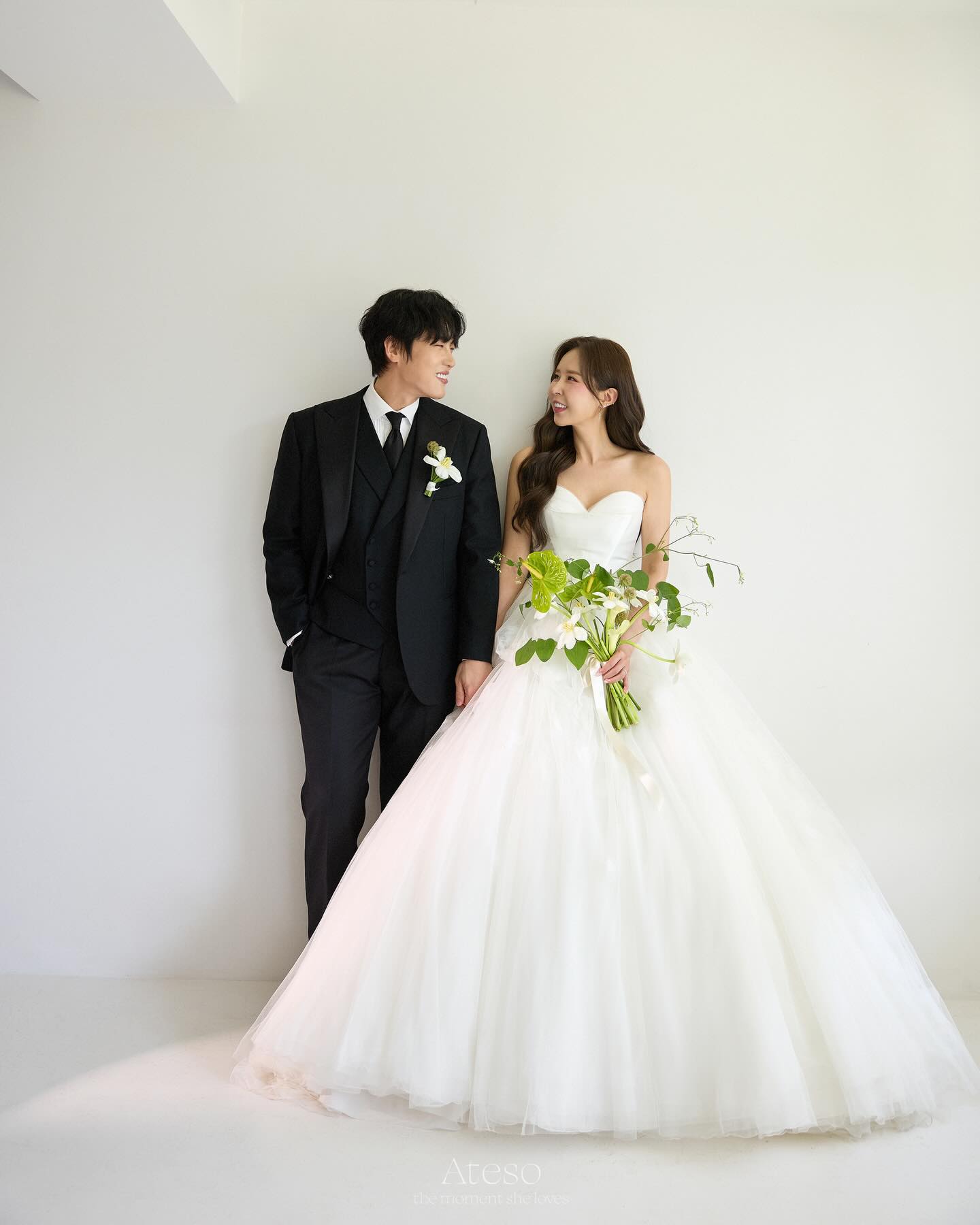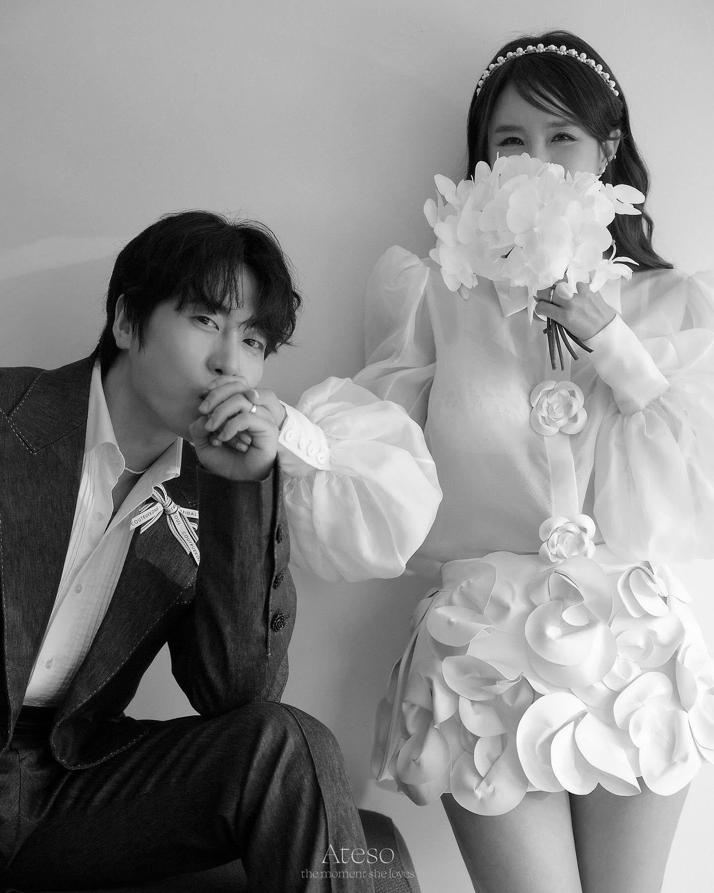公開された写真を見ると、シンジはさまざまなスタイルのドレスを着て、美しい姿を見せつけている。お相手の歌手ムンウォンもさまざまなスタイルのスーツを着ており、目を引く。二人はウエディング写真で明るい笑顔を浮かべ、仲良くスキンシップを取って愛情をアピールした。