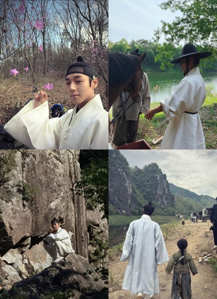 公開された写真を見ると、パク・ジフンは韓服(韓国の伝統衣装)姿でピンクの花を手にしてカメラを見つめていたり、青々とした自然の中で馬にえさを与えながら余裕あるひとときを過ごしている。