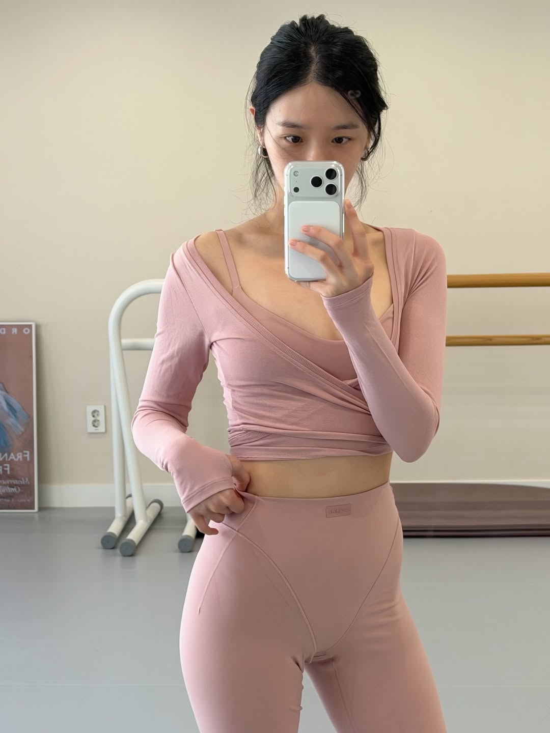 公開された写真でパク・ギュヨンは、ピンク色のショート丈トップスにレギンスを合わせたピラティス・コーデを披露。ボディラインにフィットするデザインが、くびれたウエストラインや鍛え上げた腹筋を強調し、視線を引き付ける。さらにレッグウォーマーを着用し、バレリーナのような雰囲気を演出するパク・ギュヨンだ。