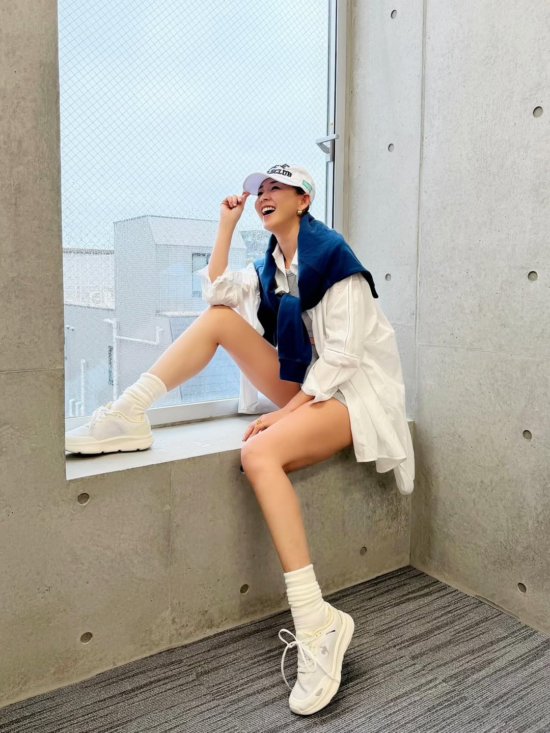 写真のSHIHOはカジュアルな装いで窓辺に座っている。オーバーサイズのシャツとショートパンツのバランスが絶妙で、センスが感じられる。さらに、長く美しい膝下と引き締まった太ももが目を引く。モデルの本領発揮と言えるポーズも印象的だ。