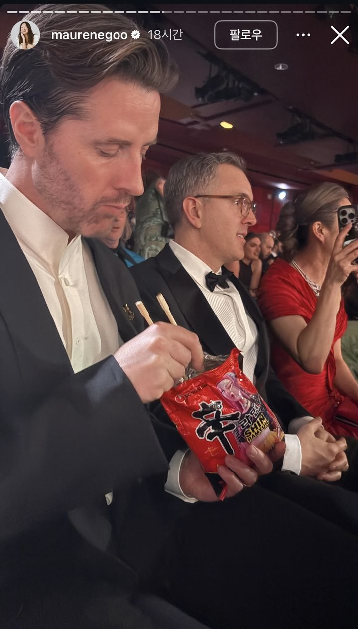 業界関係者が17日語ったところによると、Netflixアニメ『KPOPガールズ! デーモン・ハンターズ』を演出したクリス・アッペルハンス監督が、15日(現地時間)に開催されたアカデミー賞授賞式で辛ラーメンの袋を手に持って食べている姿がカメラにキャッチされたという。