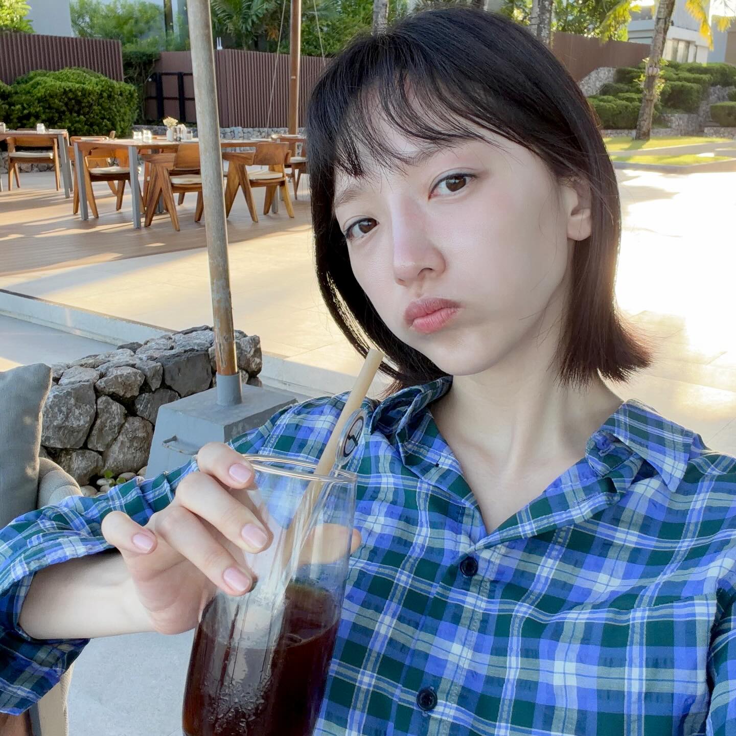 写真でピョ・イェジンは、保養地を訪れ、ゆったりとしたひとときを過ごしてい..