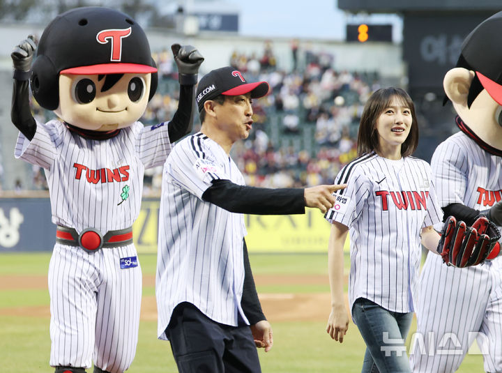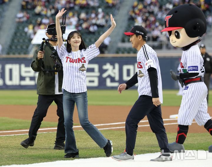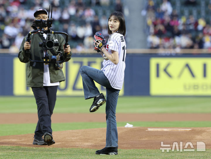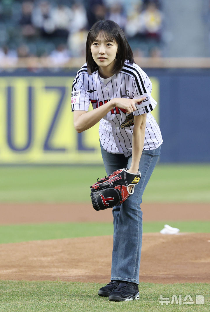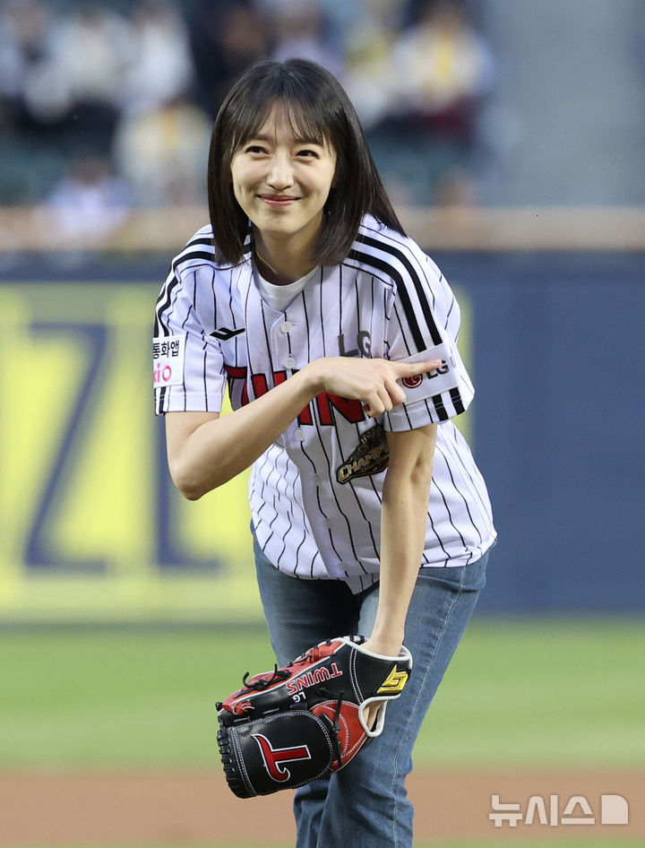 【NEWSIS】先月31日午後、ソウル市松坡区の蚕室スタジアムで、2026新韓SOL KBO(韓国プロ野球)リーグの起亜タイガース対LGツインズ戦が行われた。写真は始球式をする女優ピョ・イェジン。