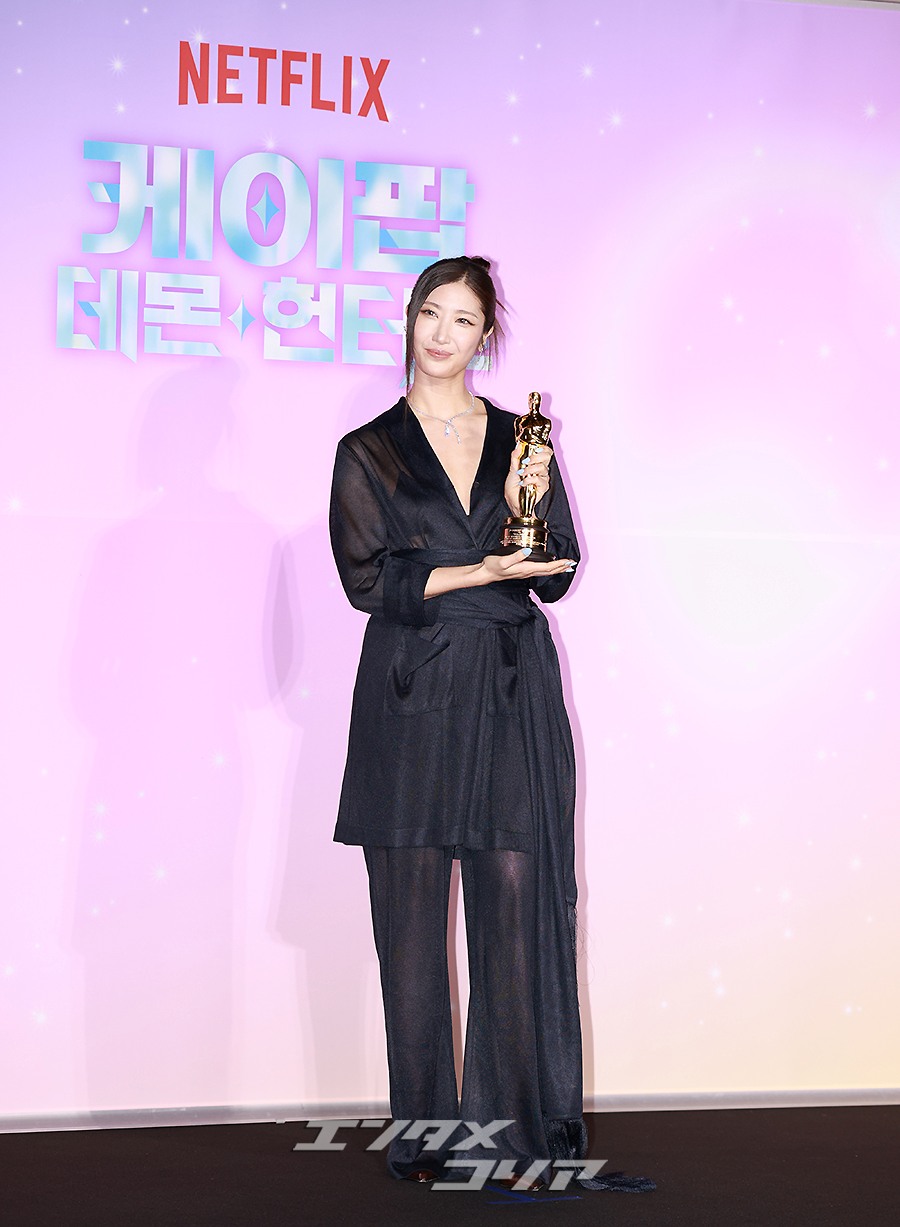 この日、会場には同作の演出を担当したマギー・カン監督、クリス・アッペルハンス監督をはじめ、世界中で話題を呼んだ主題歌「Golden」の作曲を手掛けた歌手EJAE、「How It’s Done」「Golden」「Your Idol」など人気を集めた挿入歌の共同作曲家であり、THE BLACK LABELのプロデューサーでもあるIDO(イ・ユハン、クァク・ジュンギュ、ナム・ヒドン)が姿を見せ、韓国の報道陣の前に立った。