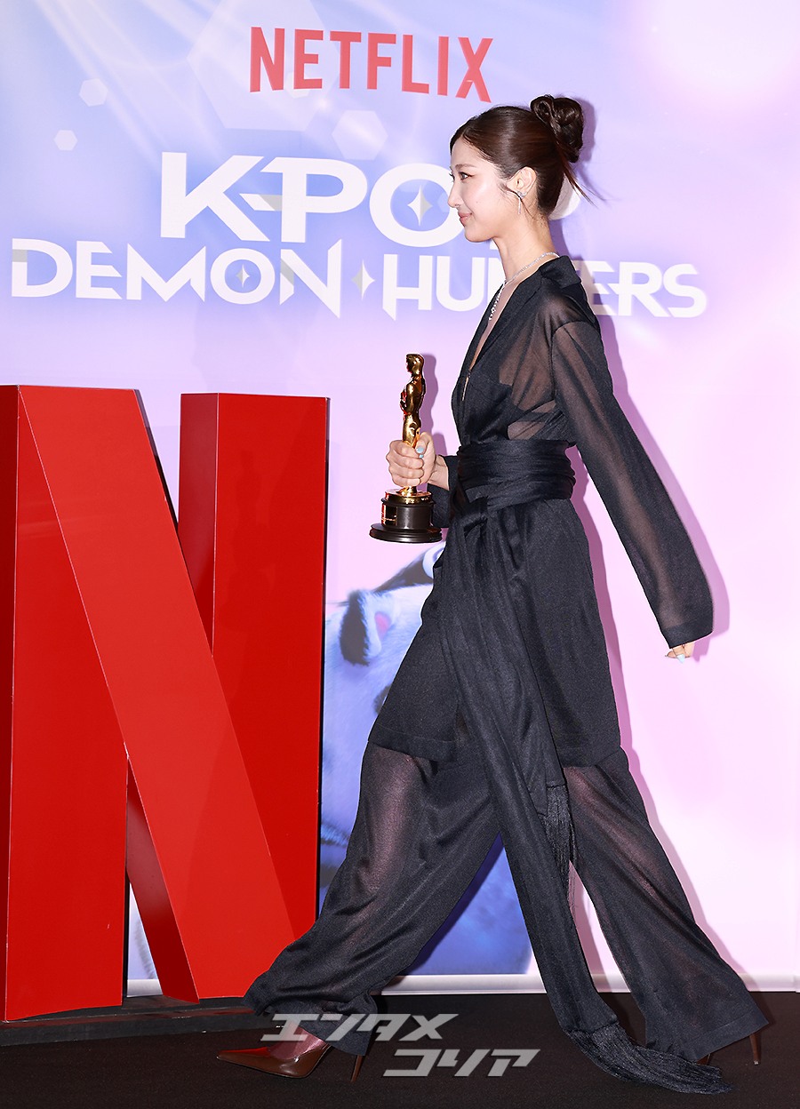 動画配信サービス「NETFLIX」のアニメ映画『KPOPガールズ! デーモン・ハンターズ』の第98回アカデミー賞受賞を記念した記者懇談会が1日午後、ソウル市竜山区の映画館「CGV竜山アイパークモール」で行われた。
