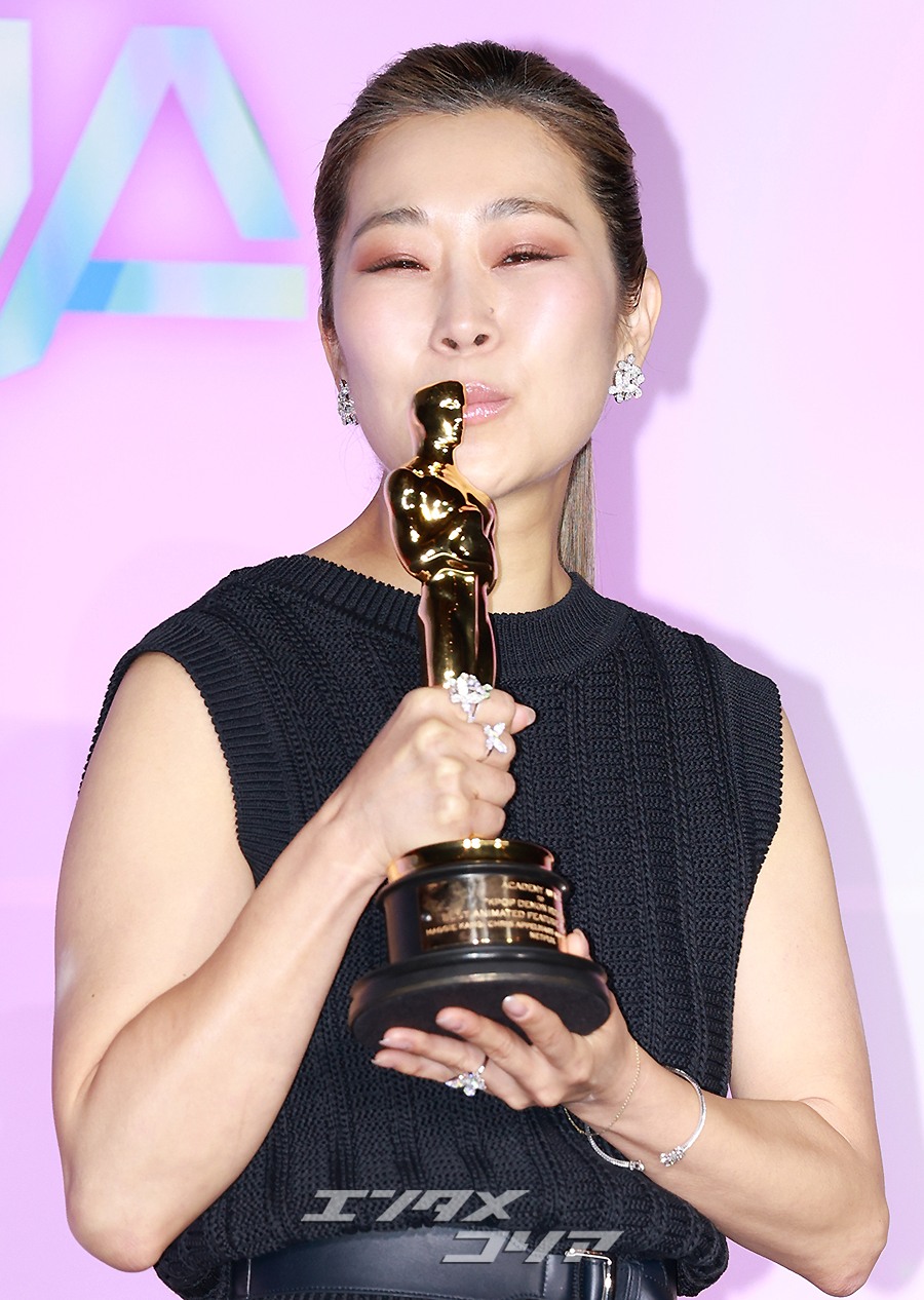 動画配信サービス「NETFLIX」のアニメ映画『KPOPガールズ! デーモン・ハンターズ』の第98回アカデミー賞受賞を記念した記者懇談会が1日午後、ソウル市竜山区の映画館「CGV竜山アイパークモール」で行われた。