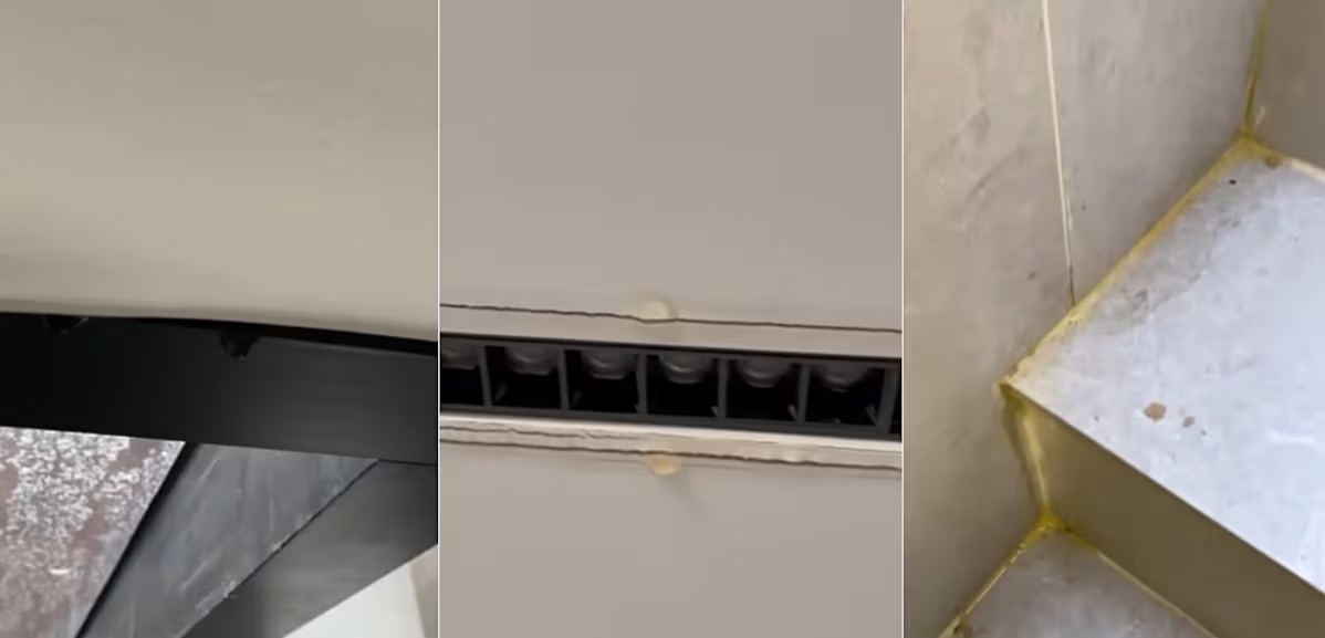 さらに、部屋のカーテンを開けてしみのついた窓際を見せ、「(内装業者が)仕上げをせずに消えてしまった。雨漏りもするし、腐食も進んでいる。わたしにも原因が分からない」と語った。さらに「別の業者を呼んで補修工事をしたが、今度は別の場所から水が漏れてきた」と打ち明けた。