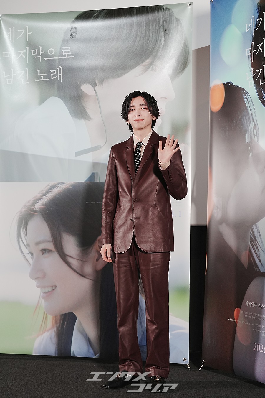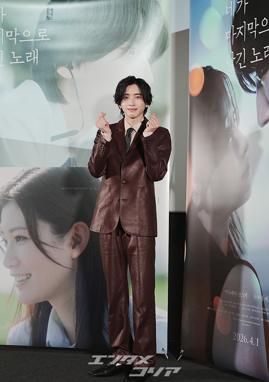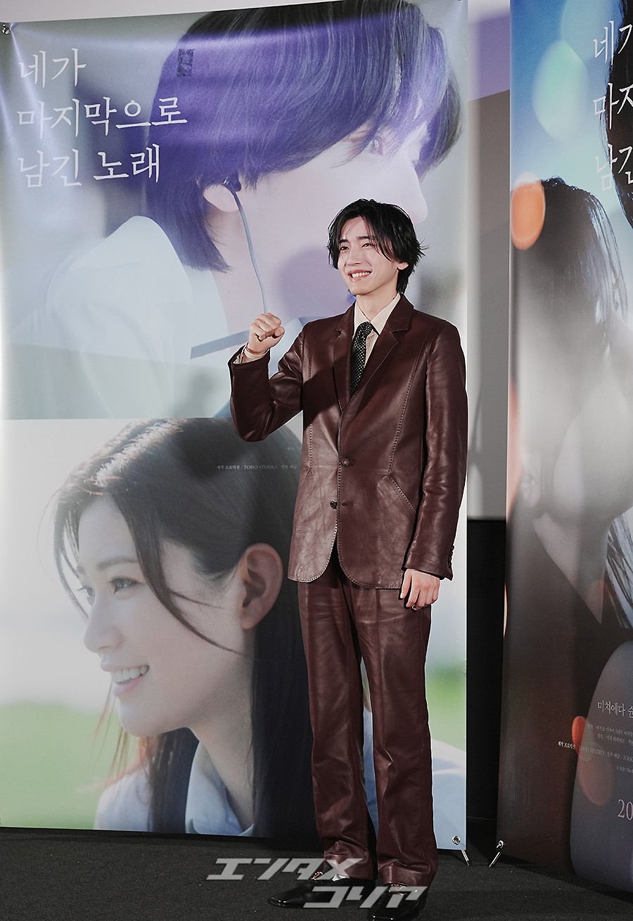 男性アイドルグループなにわ男子のメンバーで俳優としても活動している道枝駿佑が3日、ソウル市竜山区の映画館「CGV竜山アイパークモール」で行われた映画『君が最後に遺した歌』記者懇談会に出席した。