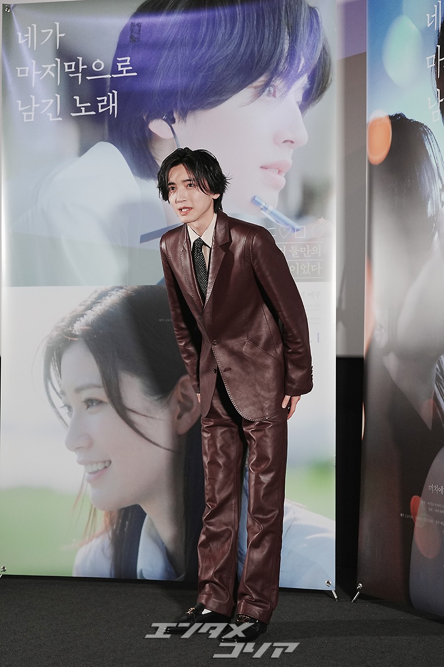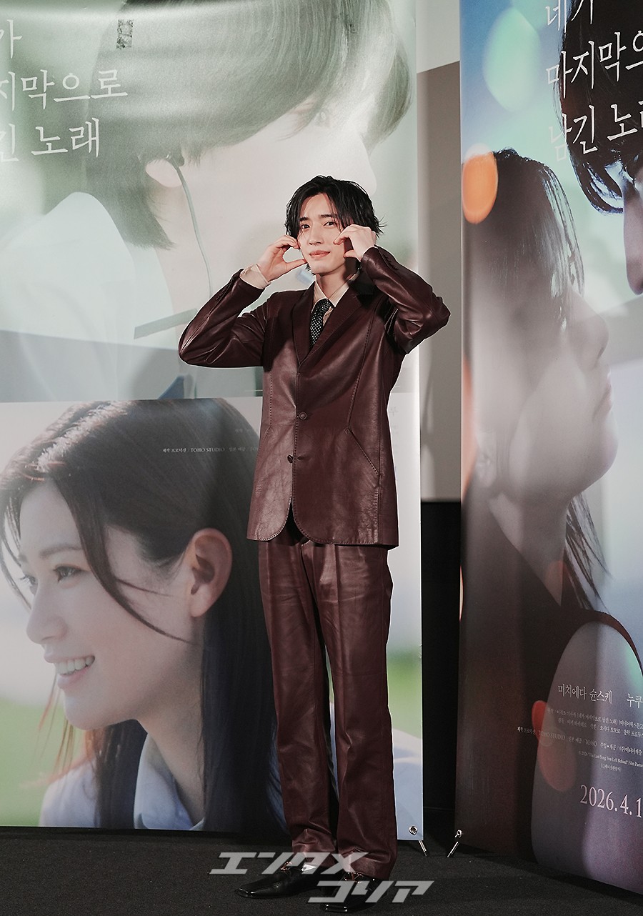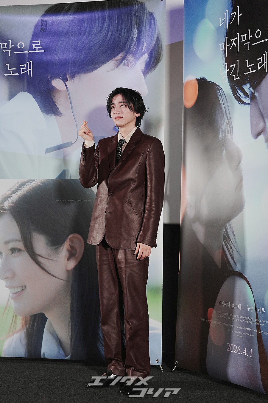 男性アイドルグループなにわ男子のメンバーで俳優としても活動している道枝駿佑が3日、ソウル市竜山区の映画館「CGV竜山アイパークモール」で行われた映画『君が最後に遺した歌』記者懇談会に出席した。
