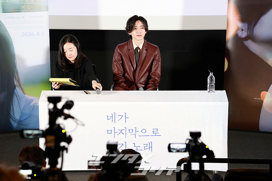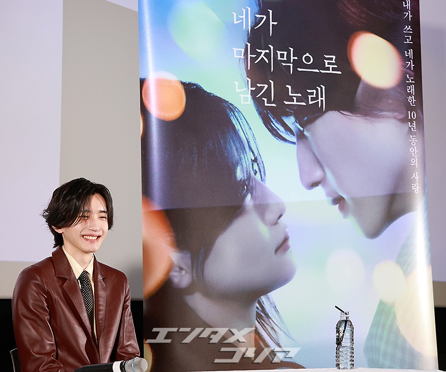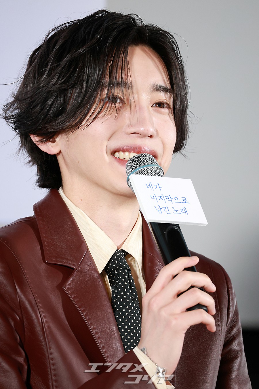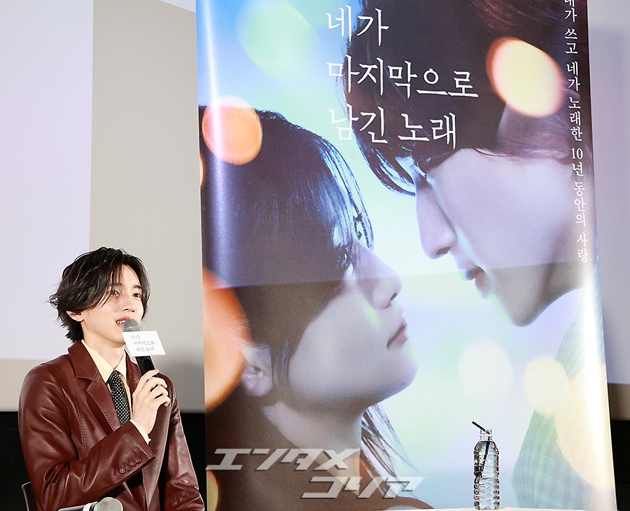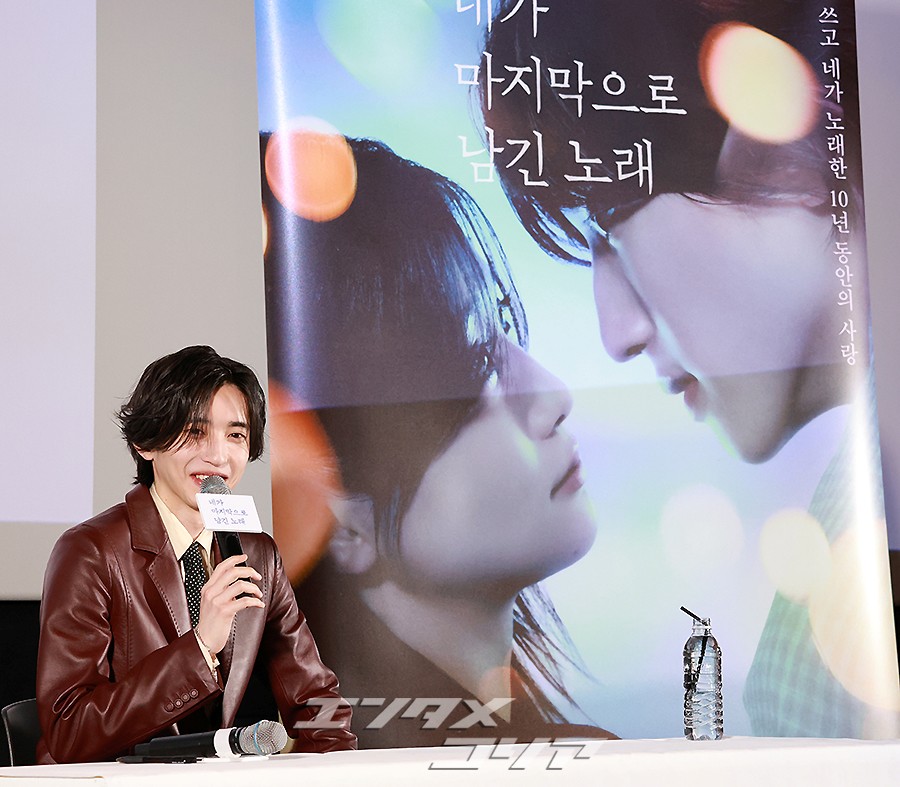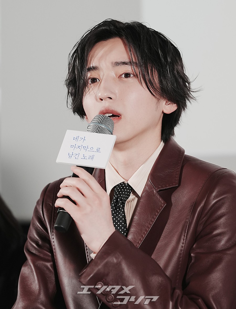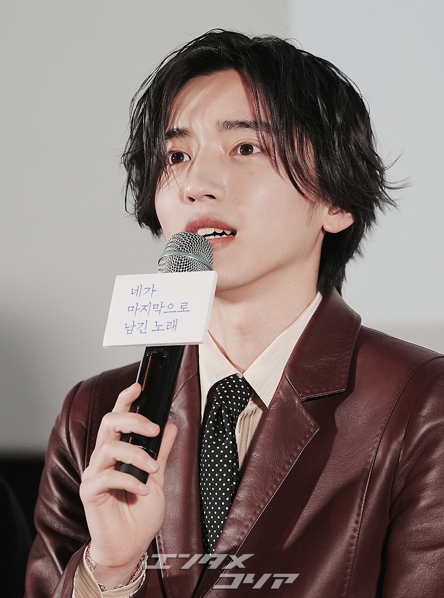 男性アイドルグループなにわ男子のメンバーで俳優としても活動している道枝駿佑が3日、ソウル市竜山区の映画館「CGV竜山アイパークモール」で行われた映画『君が最後に遺した歌』記者懇談会に出席した。