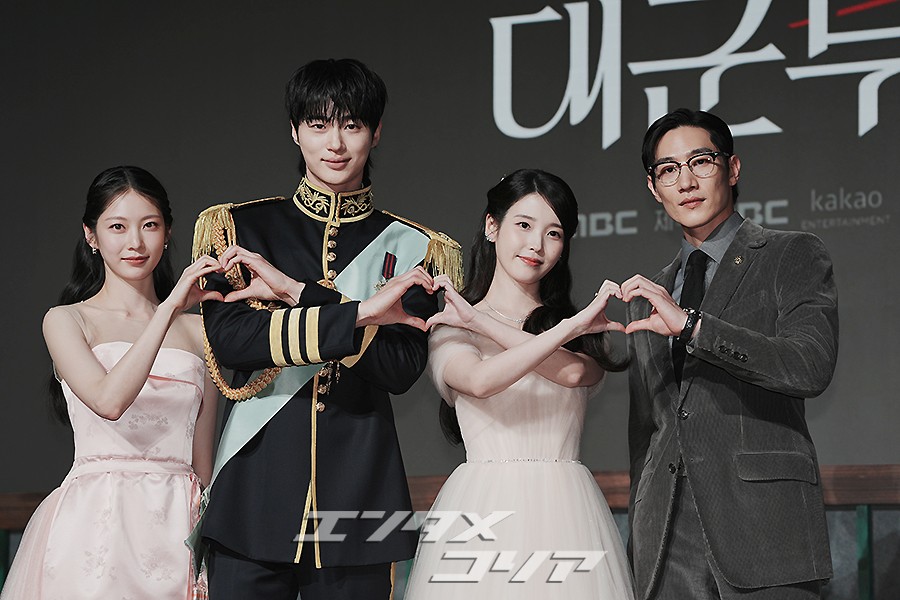 俳優ユ・スビン、コン・スンヨン、ビョン・ウソク、IU(アイユー)、ノ・サンヒョン、イ・ヨン(写真左から)が6日午後、ソウル市江南区のホテル「朝鮮パレス・ソウル・江南」で開かれたMBC新金土ドラマ『21世紀の大君夫人』(ユ・ジウォン脚本、パク・ジュンファ演出)の制作発表会でポーズを取っているところ。