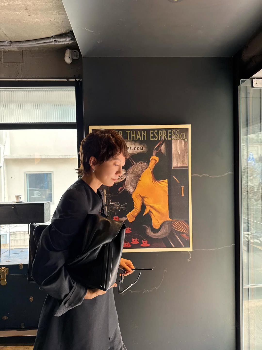 公開された写真を見ると、カフェで時間を過ごしているキム・ヒエの姿が収められている。ショートヘアに変身した姿が目を引く。