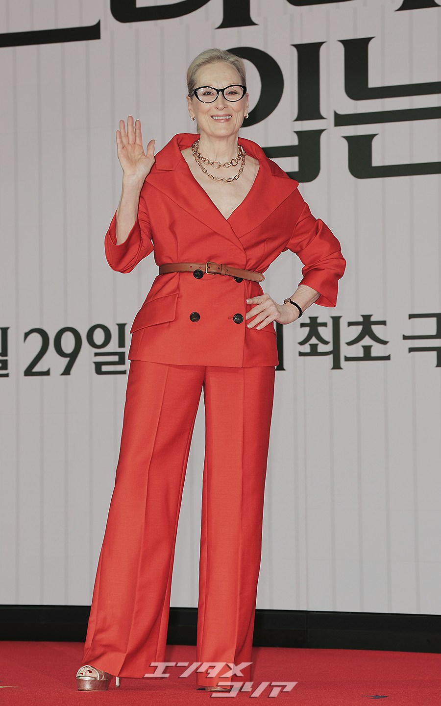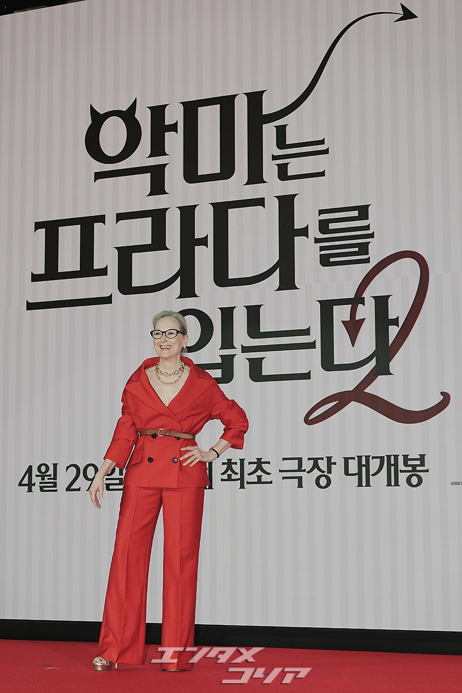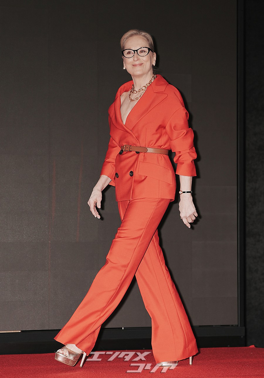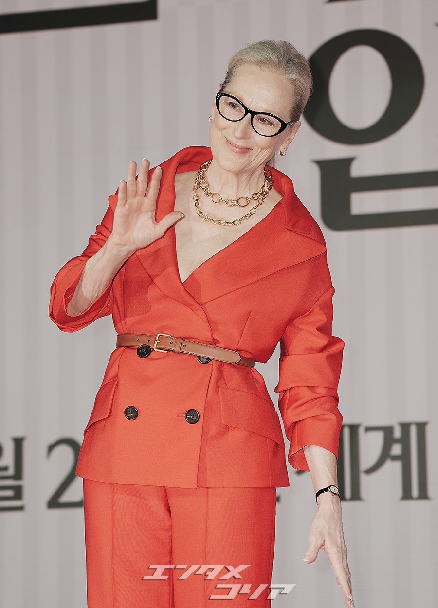 女優メリル・ストリープ(写真左)とアン・ハサウェイが8日午前、ソウル市鍾路区のフォーシーズンズ・ホテル・ソウルで行われた映画『プラダを着た悪魔2』の記者懇談会に出席し、フォトタイムに応じた。