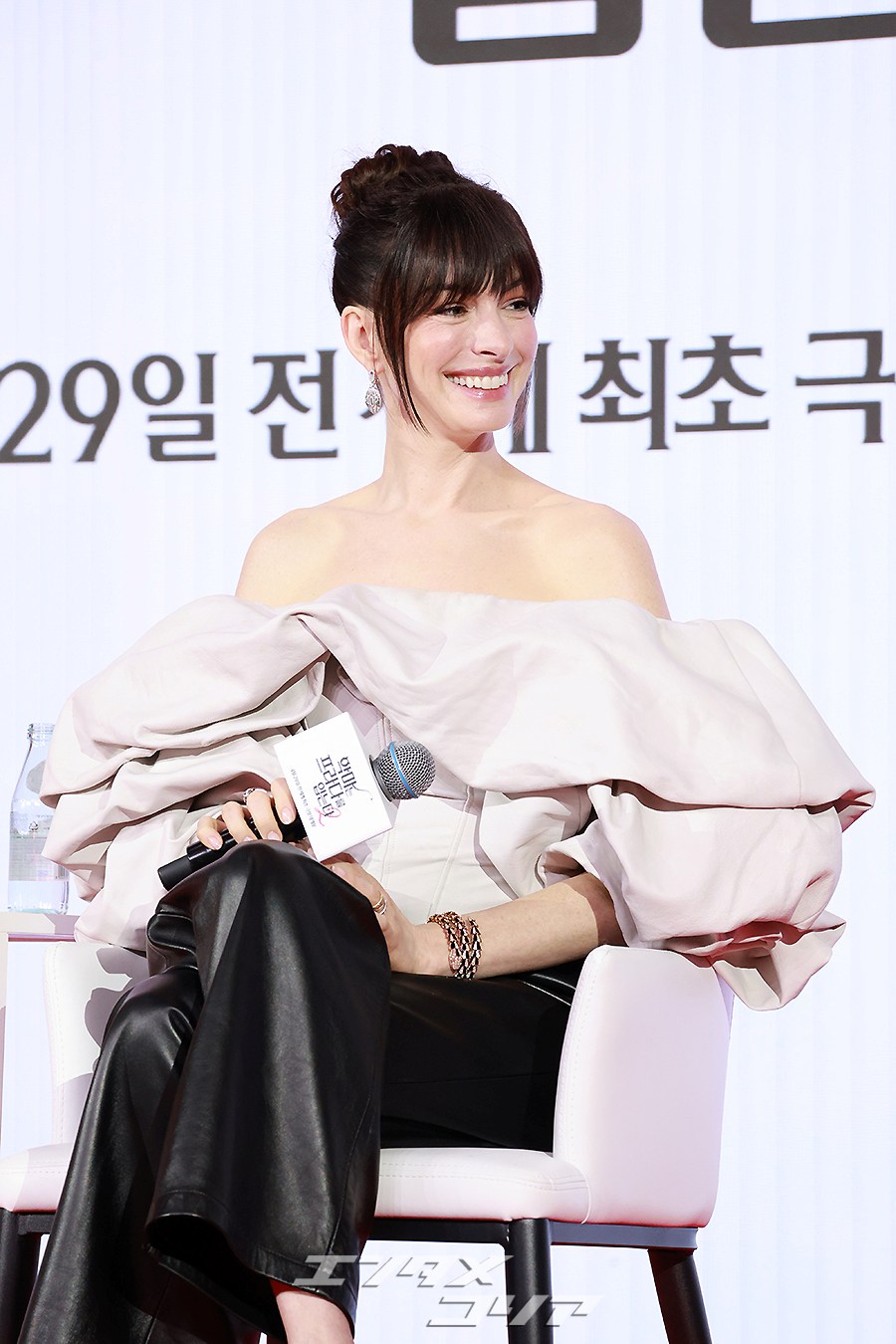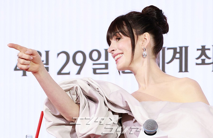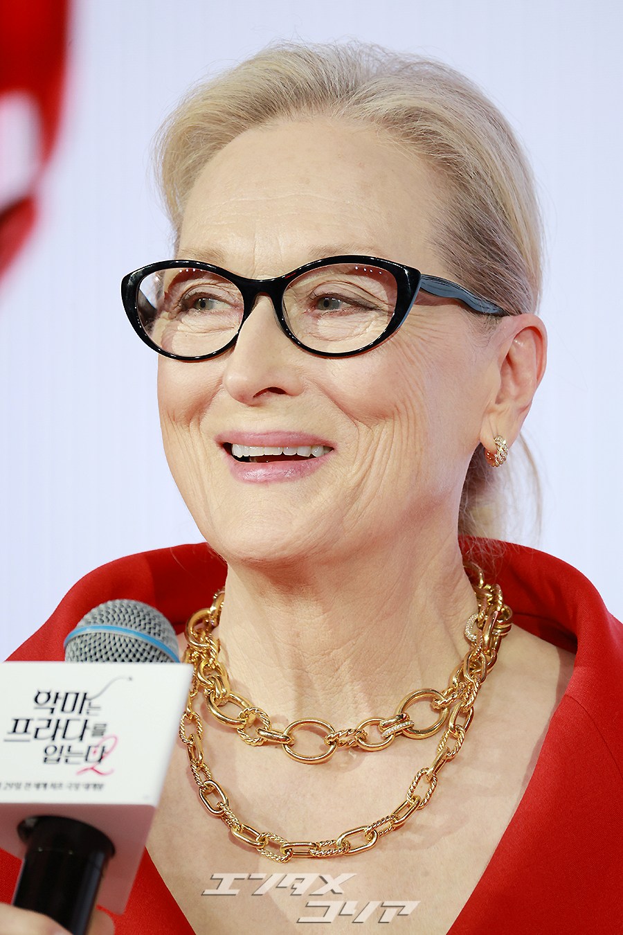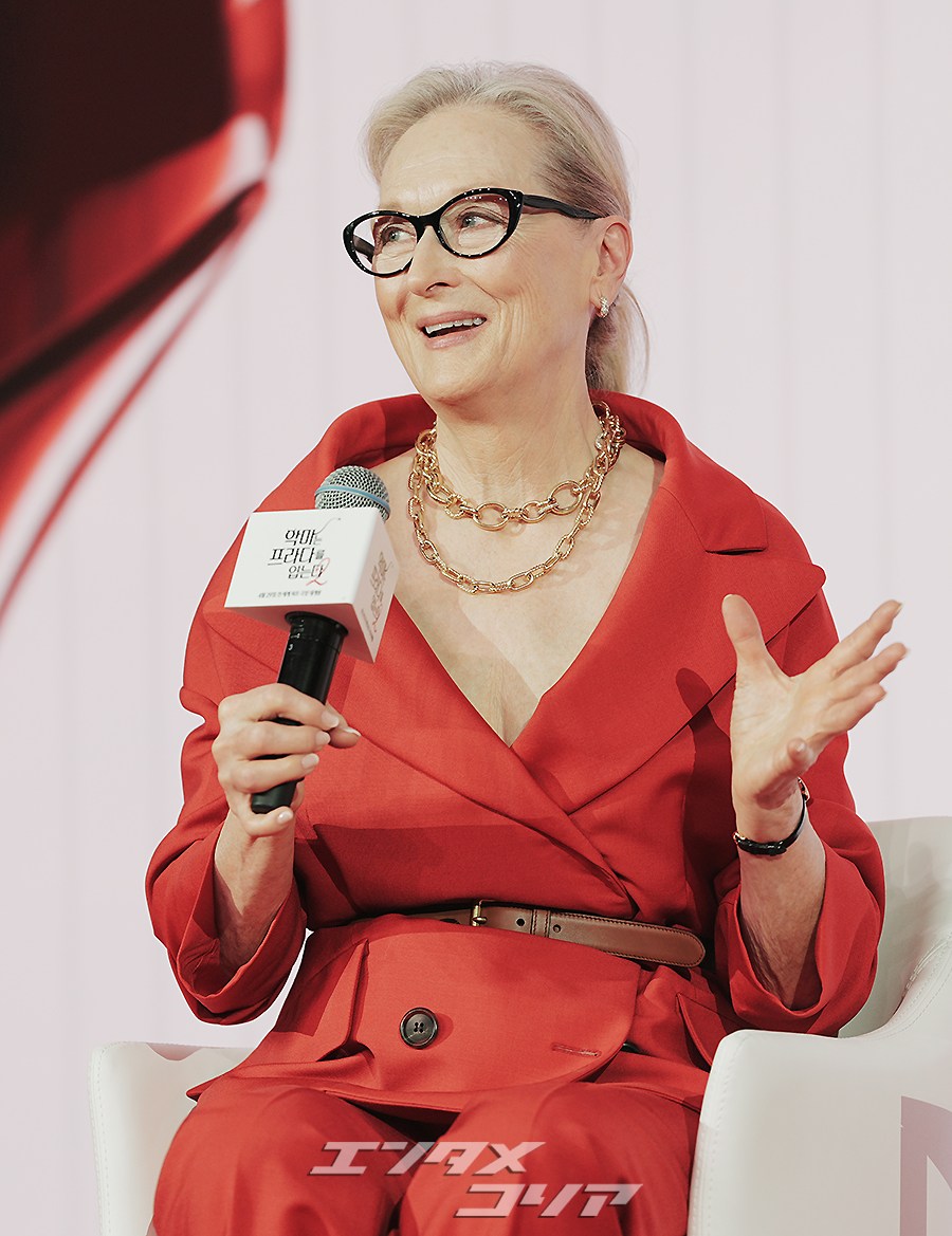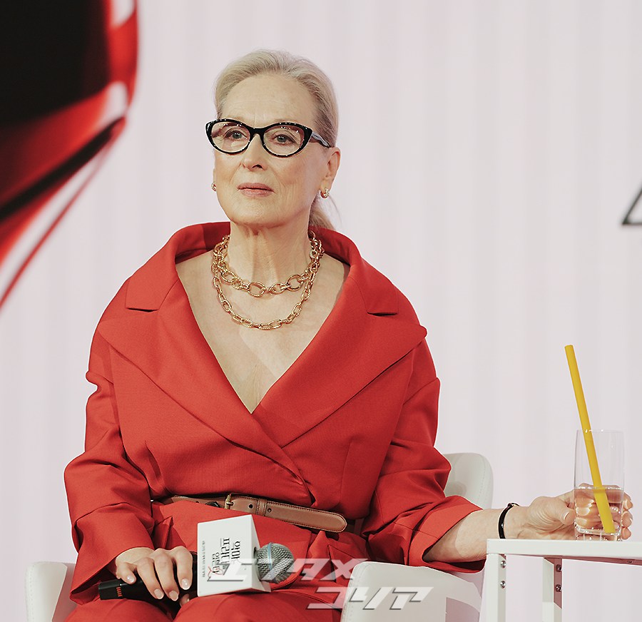 女優メリル・ストリープ(写真左)とアン・ハサウェイが8日午前、ソウル市鍾路区のフォーシーズンズ・ホテル・ソウルで行われた映画『プラダを着た悪魔2』の記者懇談会に出席し、フォトタイムに応じた。