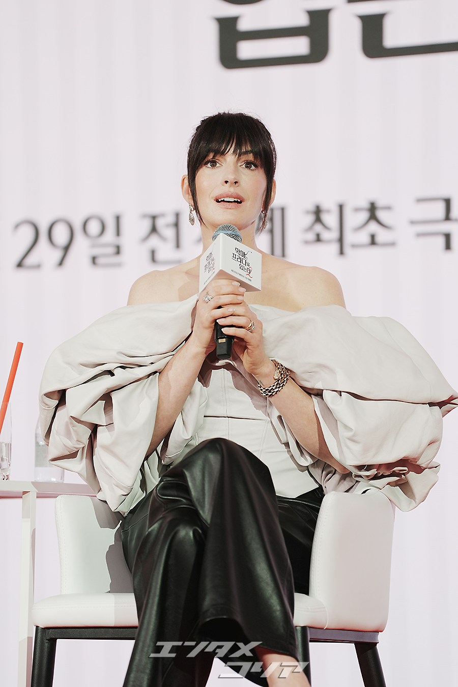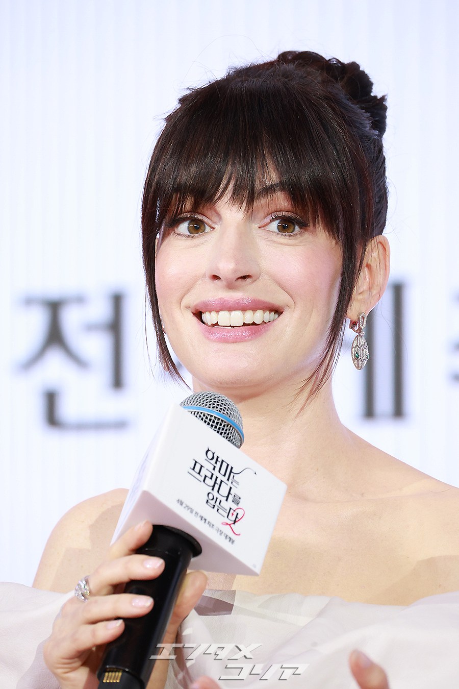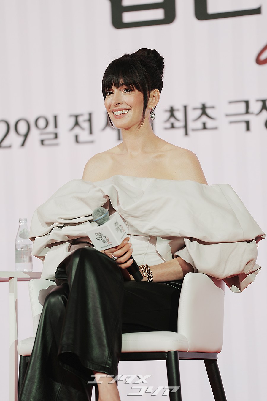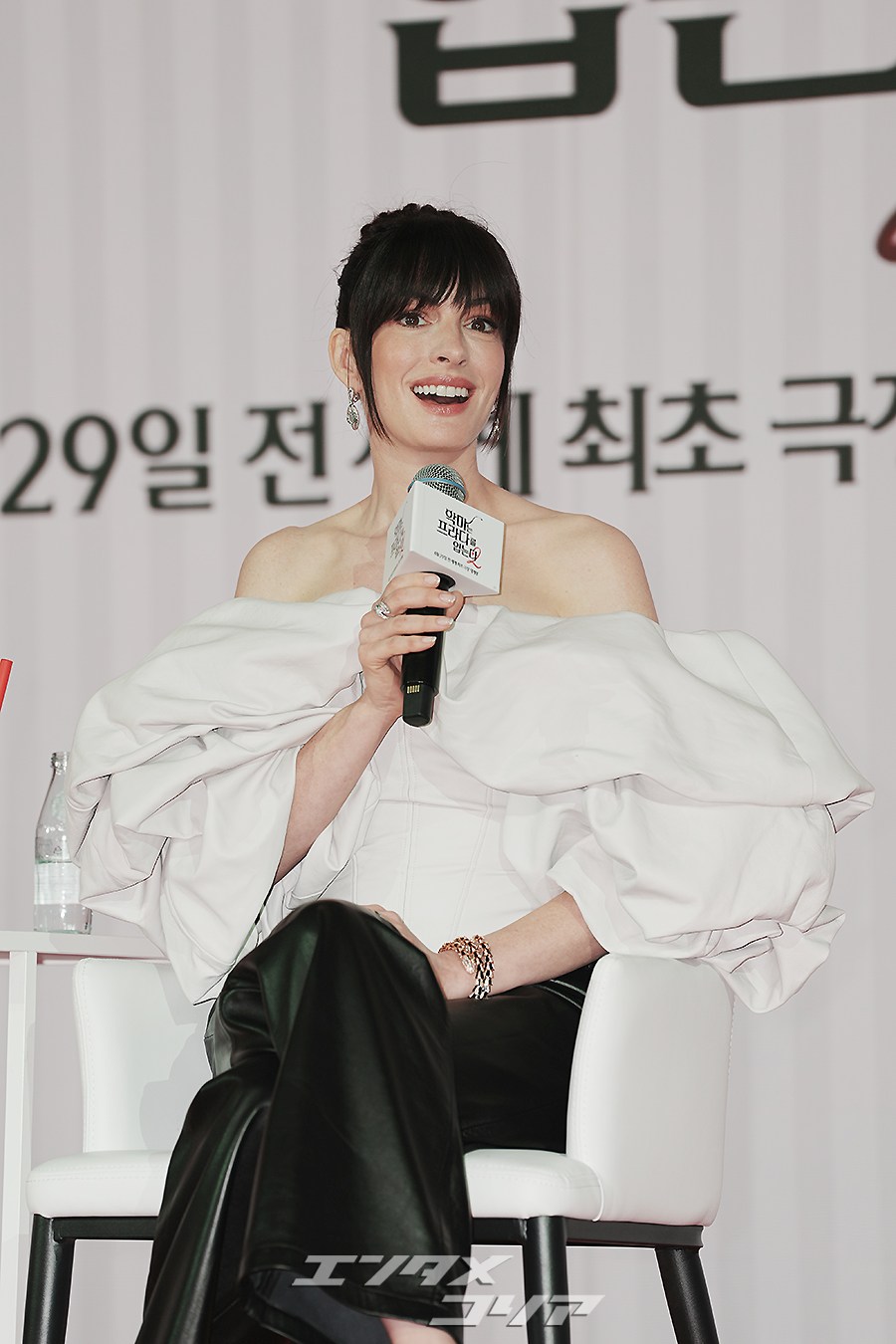 女優メリル・ストリープ(写真左)とアン・ハサウェイが8日午前、ソウル市鍾路区のフォーシーズンズ・ホテル・ソウルで行われた映画『プラダを着た悪魔2』の記者懇談会に出席し、フォトタイムに応じた。