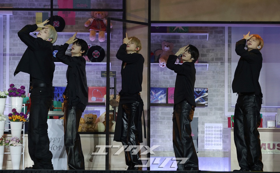 ソウル市城北区の高麗大学化汀体育館で13日、男性アイドルグループTOMORROW X TOGETHERの8枚目のミニアルバム「7TH YEAR: イバラの茂みで一瞬風が止んだとき」の発売記念先行公演が行われた。