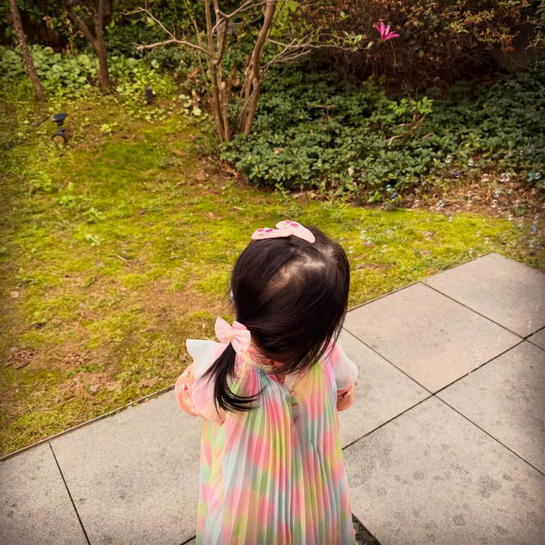 公開された写真を見ると、パステルカラーのワンピースを着たソイちゃんのろ後ろ姿が収められている。