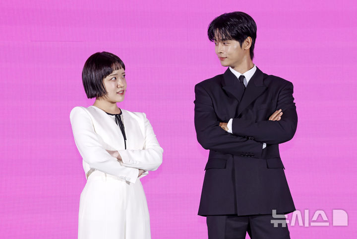 ザ・セイント(ソウル市九老区新道林洞)で14日午前、Coupang Playオリジナルシリーズ『ロマンスの絶対値』の制作発表会が行われた。この日、同イベントにはイ・テゴン監督をはじめキム・ヒャンギ、チャ・ハギョン、キム・ジェヒョン、ソン・ジョンヒョク、キム・ドンギュらが出席した。