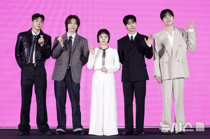 ザ・セイント(ソウル市九老区新道林洞)で14日午前、Coupang Playオリジナルシリーズ『ロマンスの絶対値』の制作発表会が行われた。この日、同イベントにはイ・テゴン監督をはじめキム・ヒャンギ、チャ・ハギョン、キム・ジェヒョン、ソン・ジョンヒョク、キム・ドンギュらが出席した。