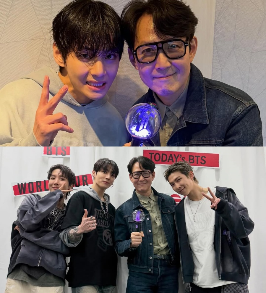 また、イ・ジョンジェは防弾少年団の公式ペンライトを手に、V、RM、JUNG KOOK、J-HOPEらメンバーたちと撮った記念写真も公開した。