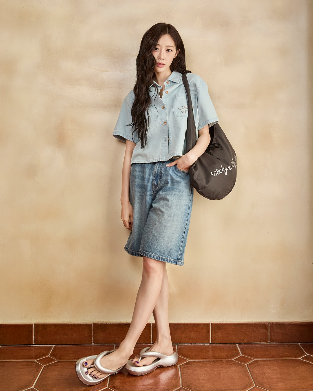 公開された写真を見ると、ジゼルは洗練されていて自由な雰囲気でアイテムを着こなし、甘くてしょっぱい夏の多彩な感性を表現した。