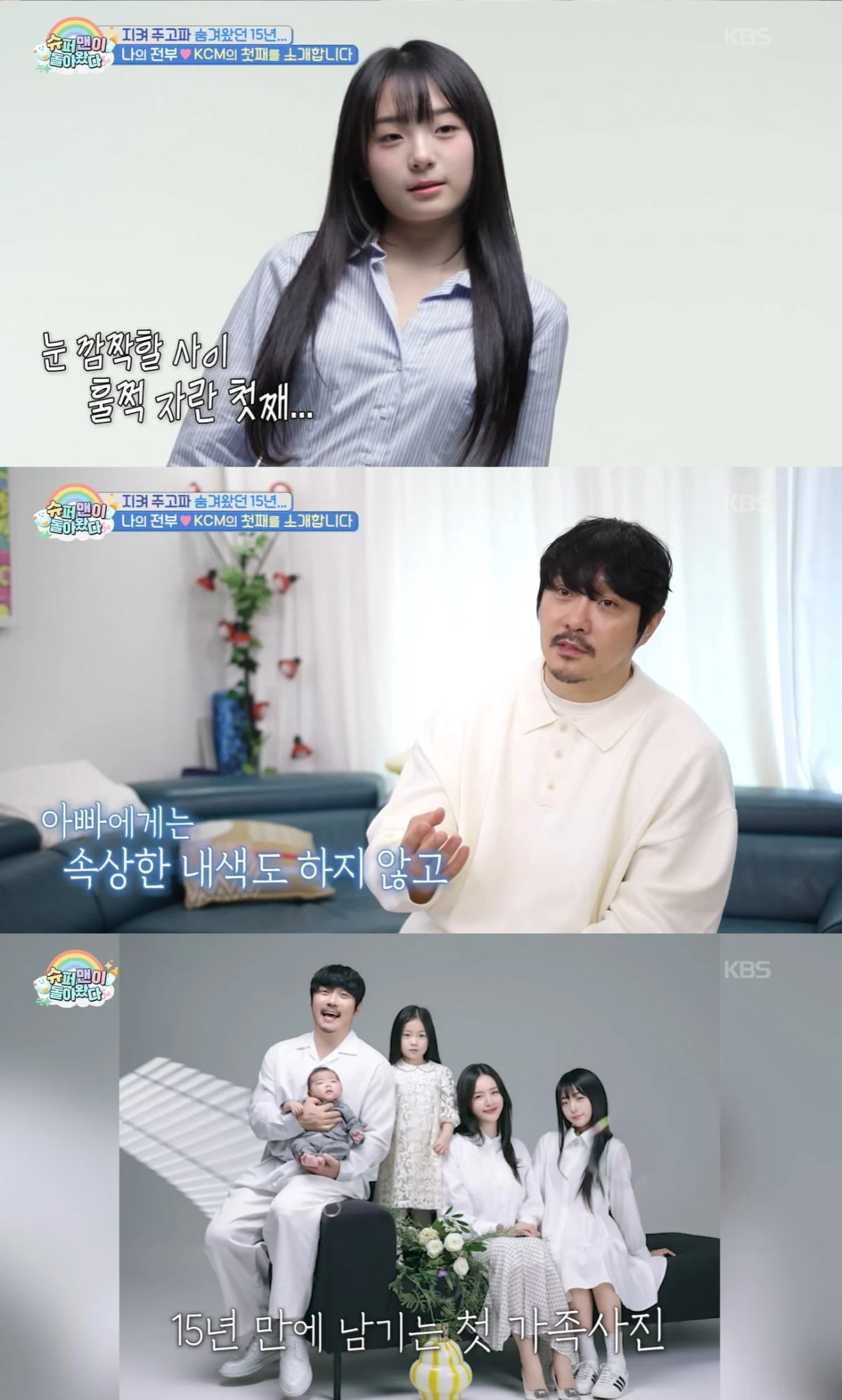 15日に放送されたKBS第2テレビのバラエティー番組『スーパーマンが帰ってきた』では、KCMが妻と3人の子どもと一緒に初めて家族写真の撮影に臨む様子が公開された。