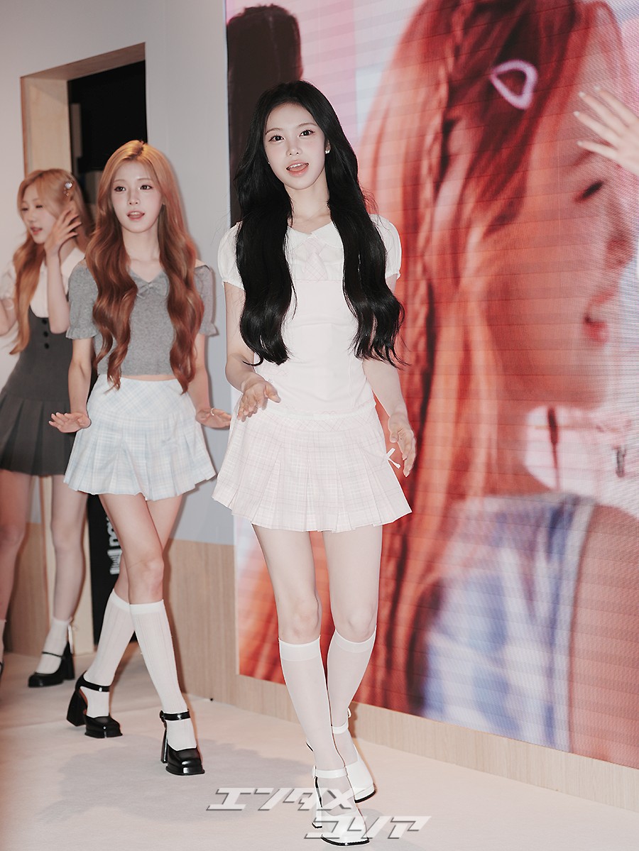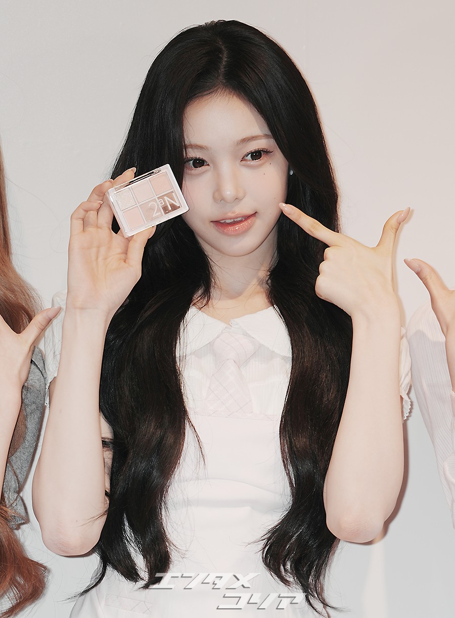 女性アイドルグループHearts2Heartsのイェオン(写真左から)、ステラ、ユハ、イアン、エイナ、ジュウン、カルメン、ジウが16日、ソウル市城東区のLECTで開催されたコスメブランド「2aN」のポップアップストア・オープン記念イベントに出席した。