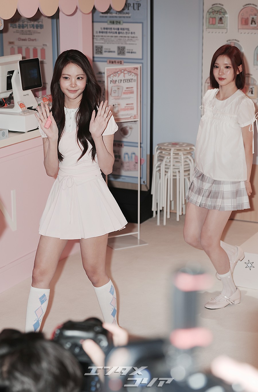 女性アイドルグループHearts2Heartsのイェオン(写真左から)、ステラ、ユハ、イアン、エイナ、ジュウン、カルメン、ジウが16日、ソウル市城東区のLECTで開催されたコスメブランド「2aN」のポップアップストア・オープン記念イベントに出席した。