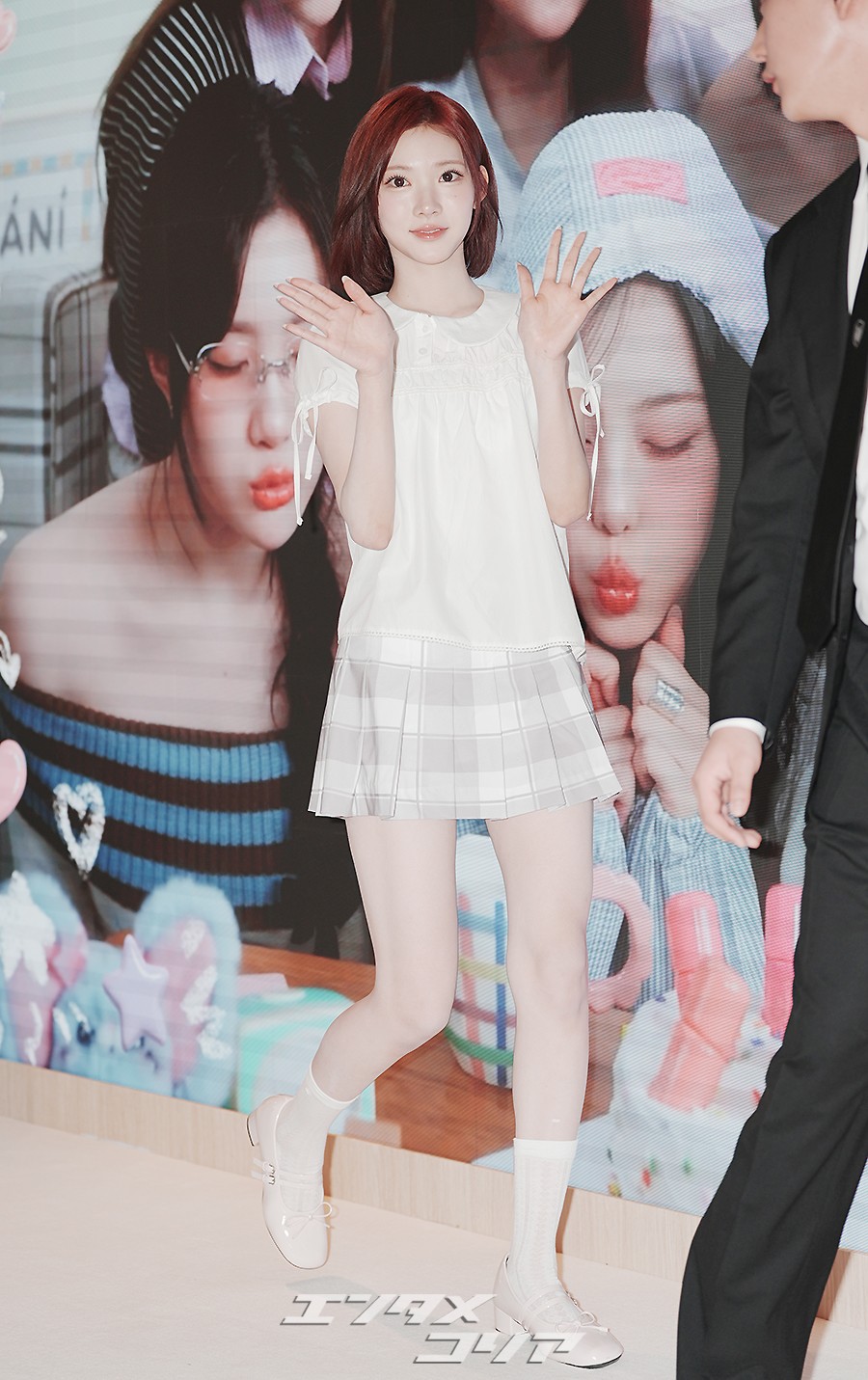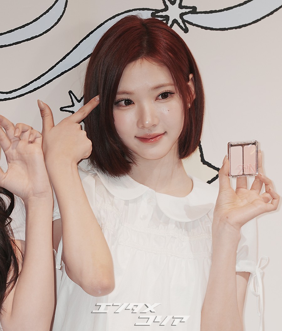 女性アイドルグループHearts2Heartsのイェオン(写真左から)、ステラ、ユハ、イアン、エイナ、ジュウン、カルメン、ジウが16日、ソウル市城東区のLECTで開催されたコスメブランド「2aN」のポップアップストア・オープン記念イベントに出席した。