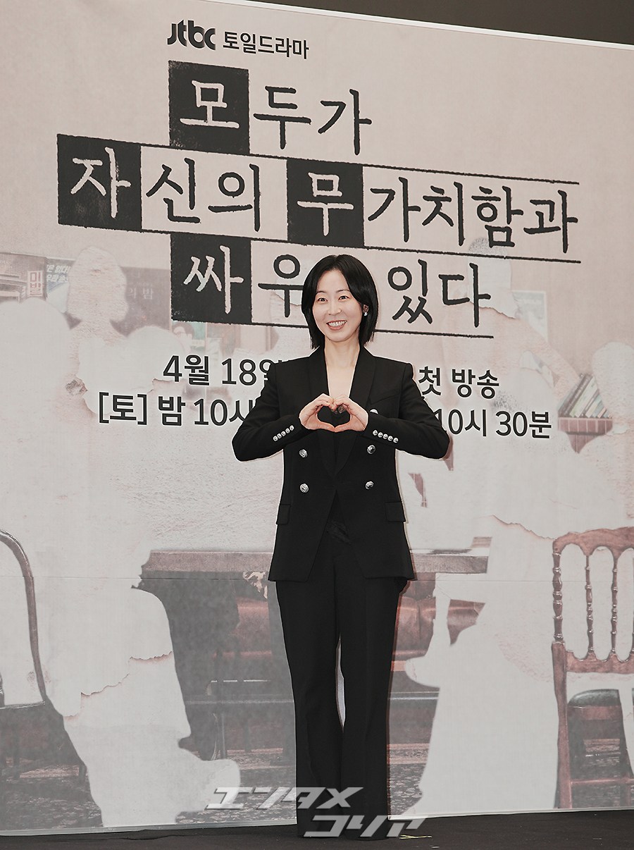 17日午後、ソウル市麻浦区のスタンフォード・ホテルでJTBC新土日ドラマ『誰だって無価値な自分と闘っている』の制作発表会が開かれ、俳優オ・ジョンセ、カン・マルグム、コ・ユンジョン、チャ・ヨンフン監督、ク・ギョファン、ハン・ソナ、パク・ヘジュンが出席した。
