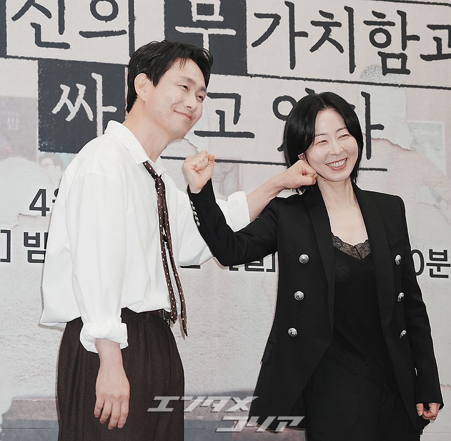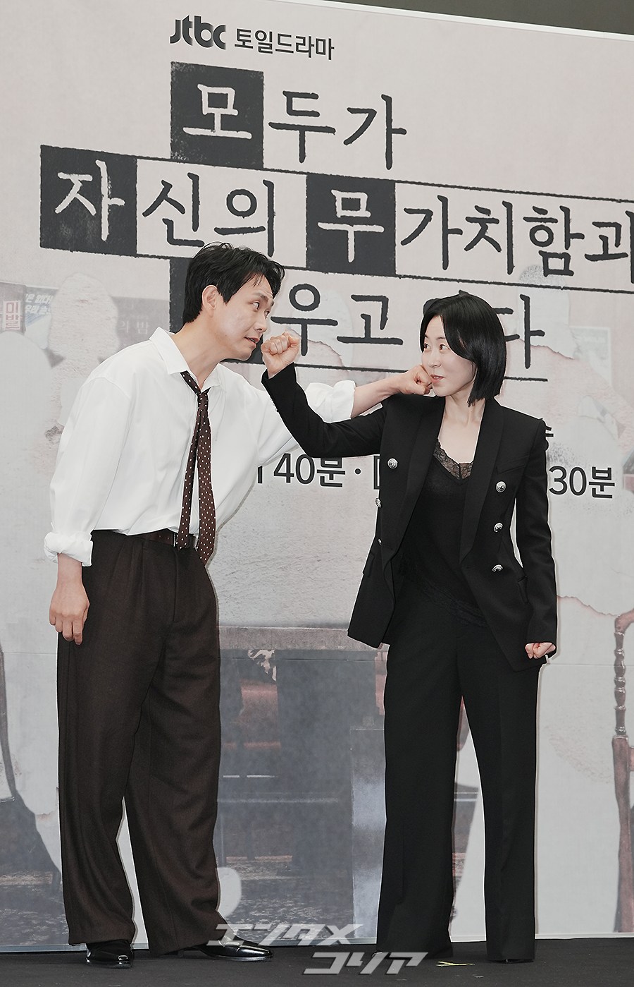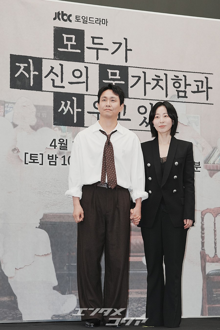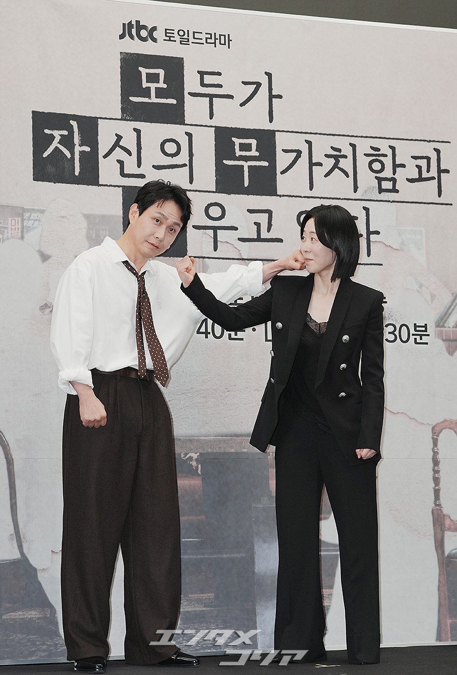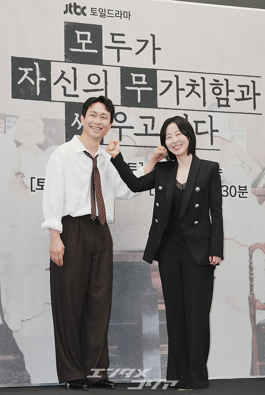 17日午後、ソウル市麻浦区のスタンフォード・ホテルでJTBC新土日ドラマ『誰だって無価値な自分と闘っている』の制作発表会が開かれ、俳優オ・ジョンセ、カン・マルグム、コ・ユンジョン、チャ・ヨンフン監督、ク・ギョファン、ハン・ソナ、パク・ヘジュンが出席した。