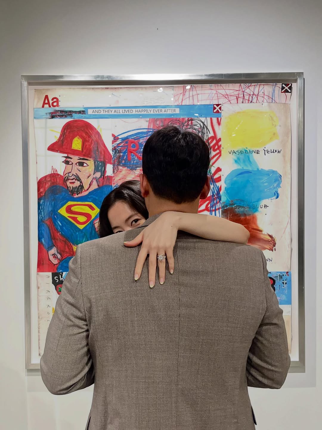 さらに、アート作品を鑑賞しながらも頼もしそうな背中の恋人とハグし、ダイヤの指輪をカメラに向かってアピールしていて、注目を集めている。