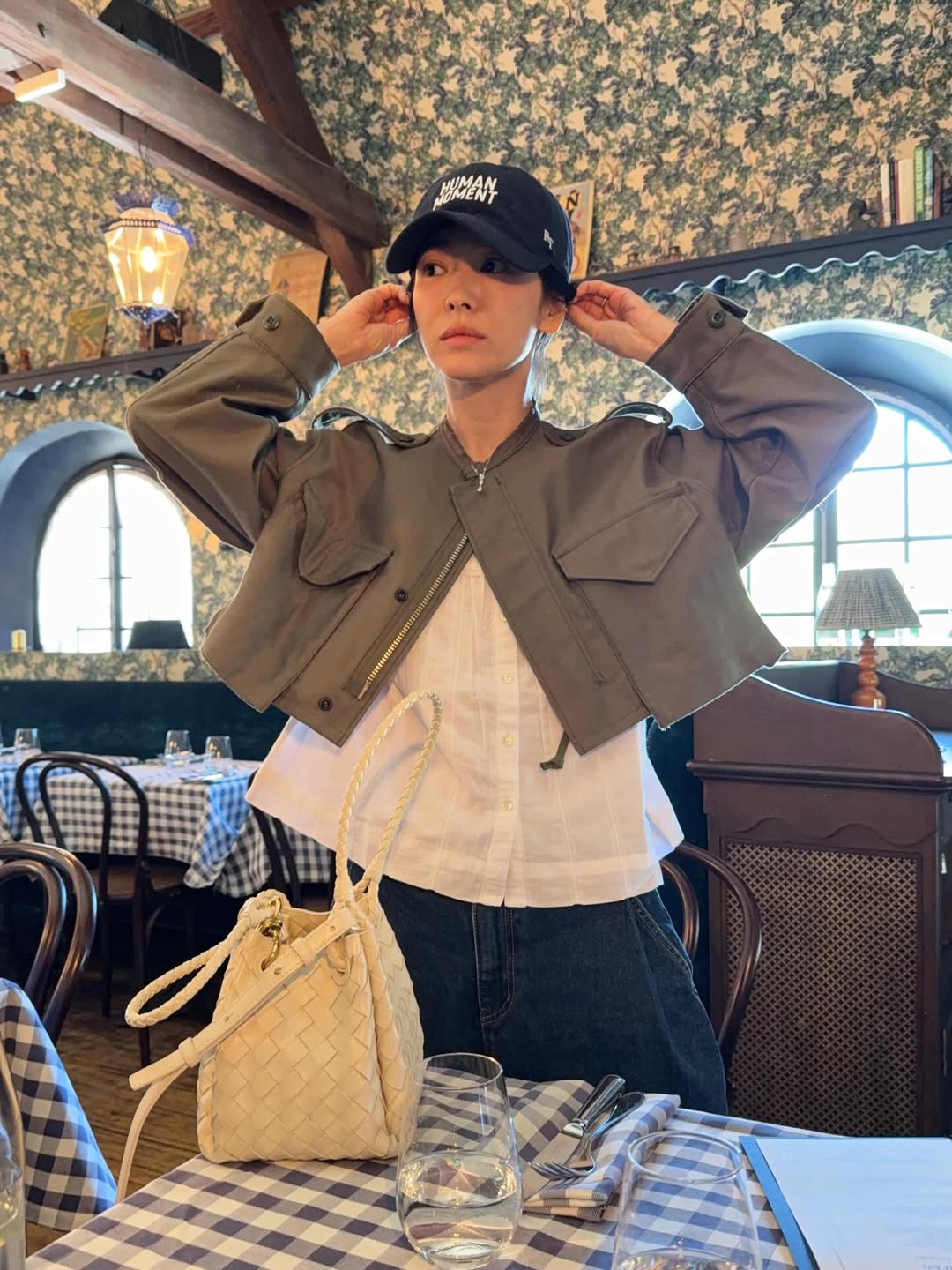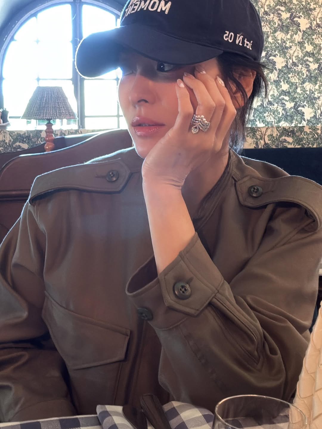 公開された写真を見ると、ソン・ヘギョはカーキ色のショート丈ジャケットに白いシャツ、野球帽を合わせたカジュアルな服装で、食堂の席に着いている。さりげなくナチュラルなスタイリングにもかかわらず、ソン・ヘギョならではの洗練された雰囲気が際立っている。