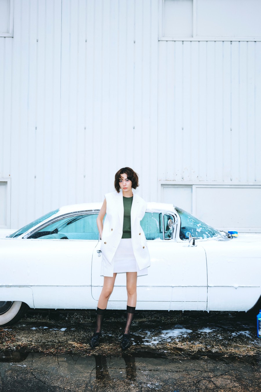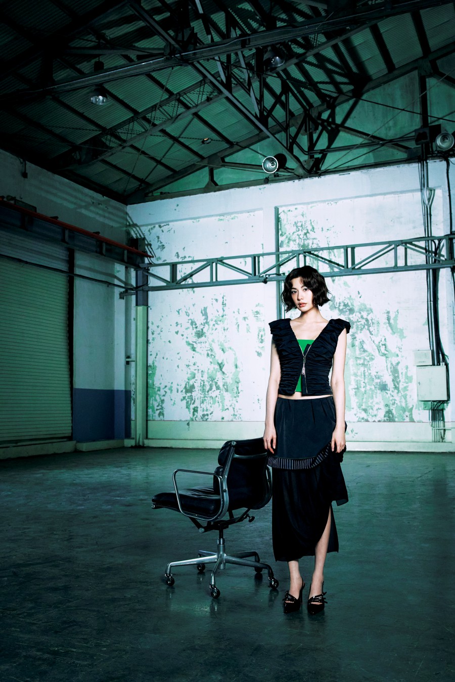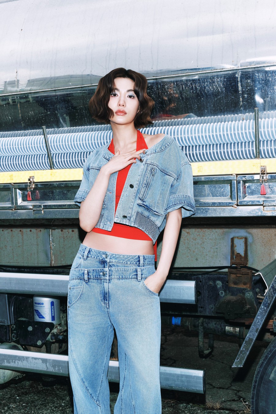 公開されたキャンペーンイメージでナナは、構造的なシルエットと控えめなディテールを中心にしたスタイリングを披露。ルーズなチェックシャツとデニムパンツのスタイリングでは自然な緊張感を表現し、軽快なカラー感のワンショルダーのトップスと白のワイドパンツの組み合わせでは感性的な対比を作り出し、視線を引き付けた。