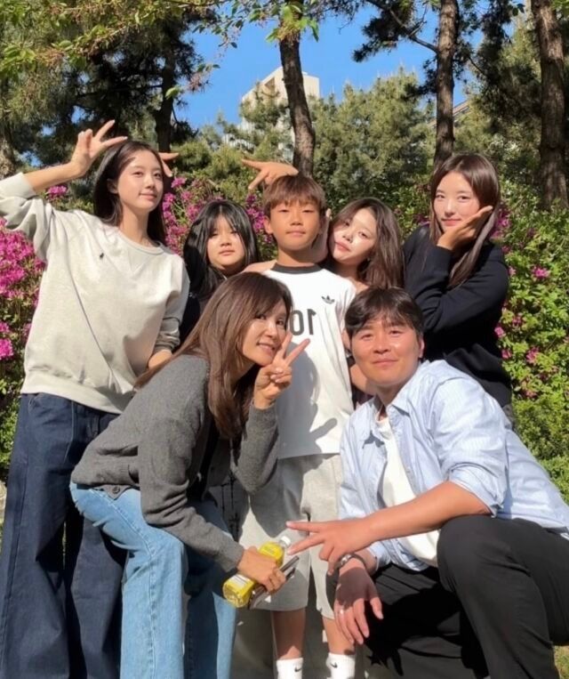 公開された写真を見ると、李同国&イ・スジンさん夫妻とジェシさん、ジェアさん、ソラさん、スアさん、シアンさんの5きょうだいがポーズを取っている。李同国はミス・コリア出身のイ・スジンさんと2005年に結婚した。息子が1人、娘が4人いる。
