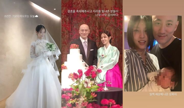 あわせて公開された写真を見ると、チョ・スエは純白のドレスに身を包み、手に持ったブーケを見つめている。また別の写真では、夫の朴緒原(パク・ソウォン)さんと一緒にウエディングケーキの前で明るい笑顔を浮かべている。