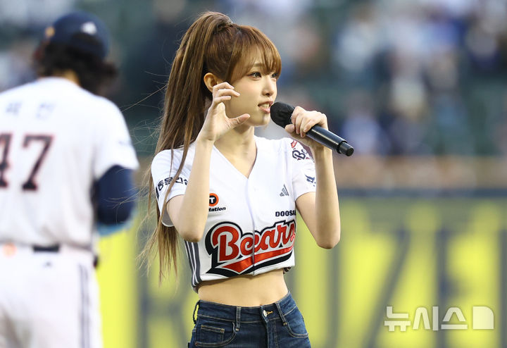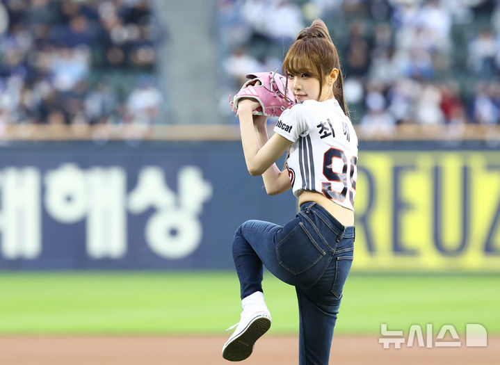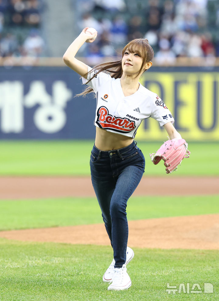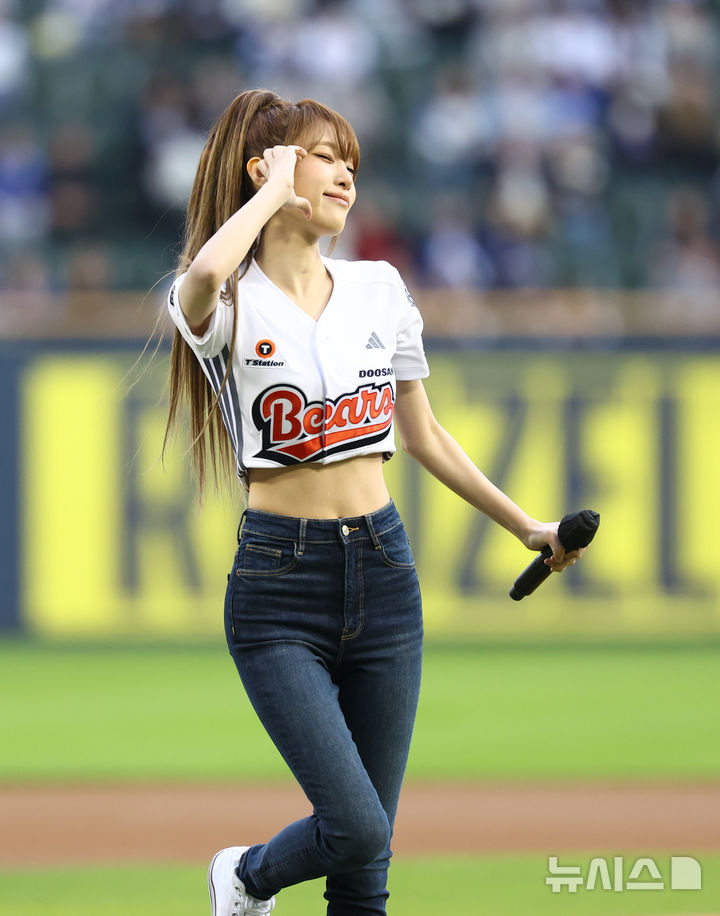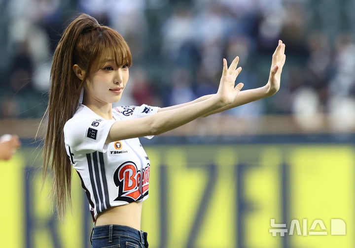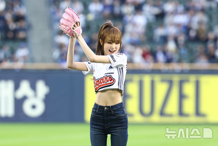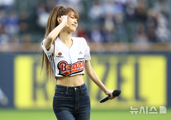 【NEWSIS】28日、ソウル市松坡区の蚕室スタジアムで、2026新韓SOL KBO(韓国プロ野球)リーグのサムスン・ライオンズ対斗山ベアーズ戦が行われた。写真は始球式をする歌手チェ・イェナ。